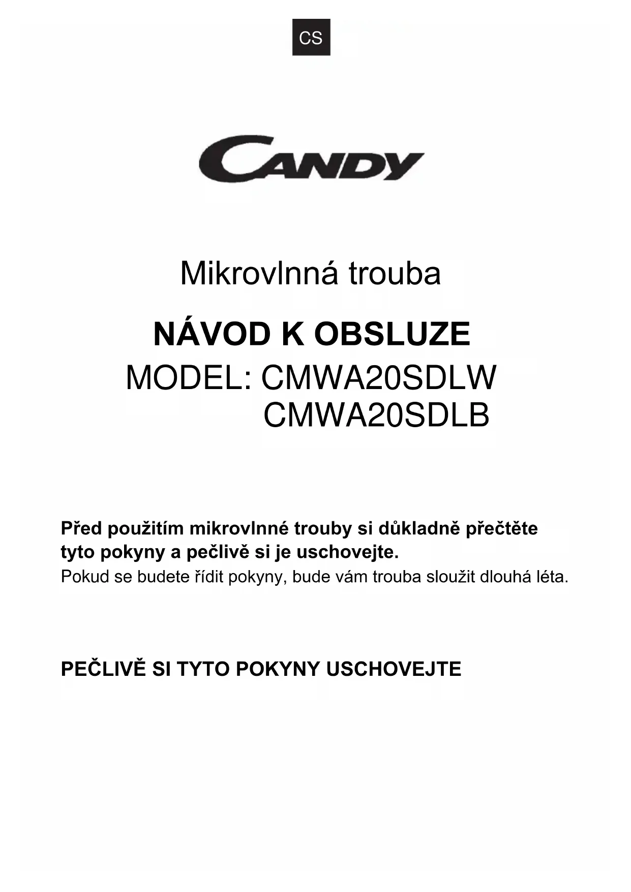 NÁVOD K OBSLUZE CMWA20SDLW CANDY