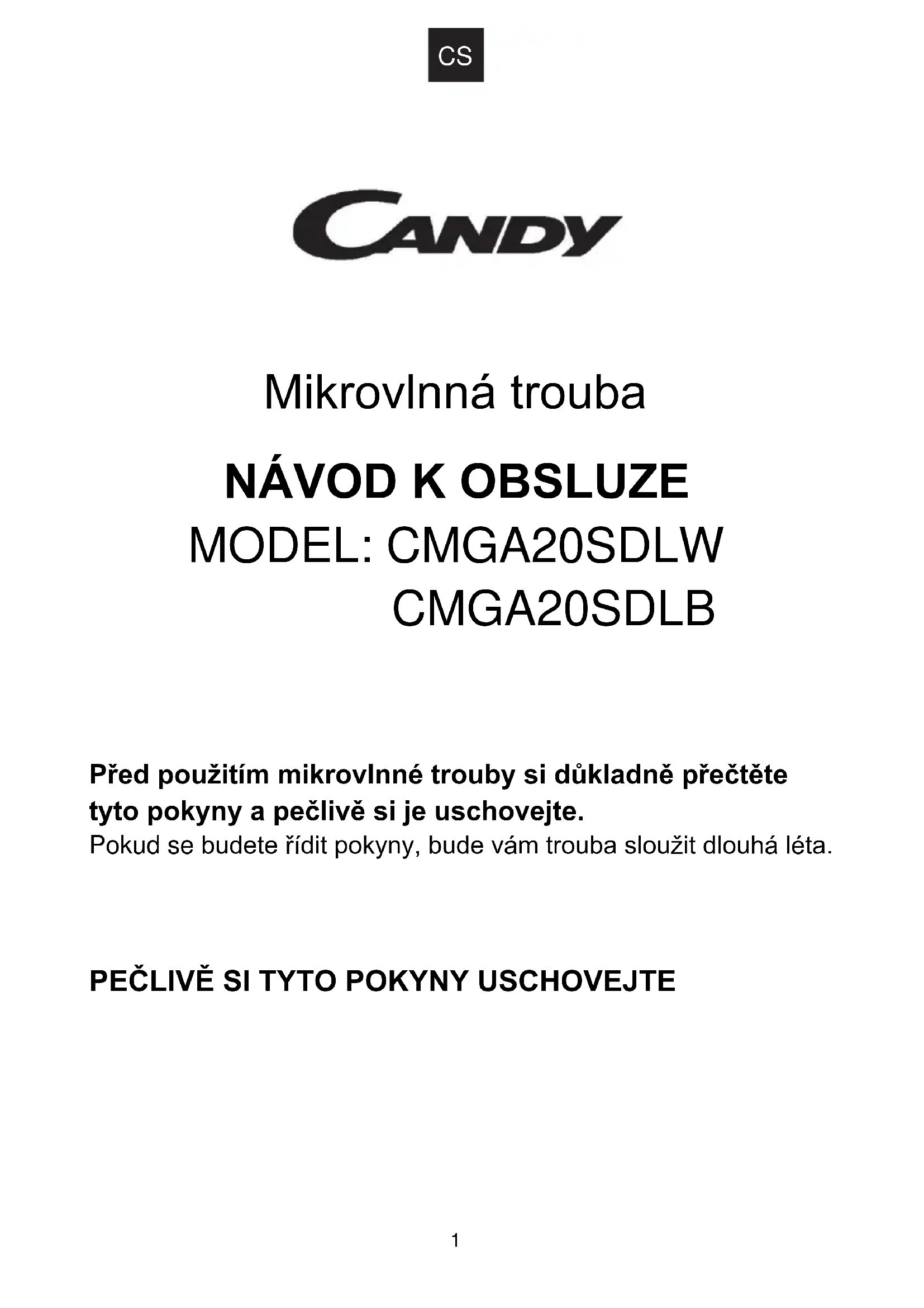 NÁVOD K OBSLUZE CMGA20SDLB CANDY