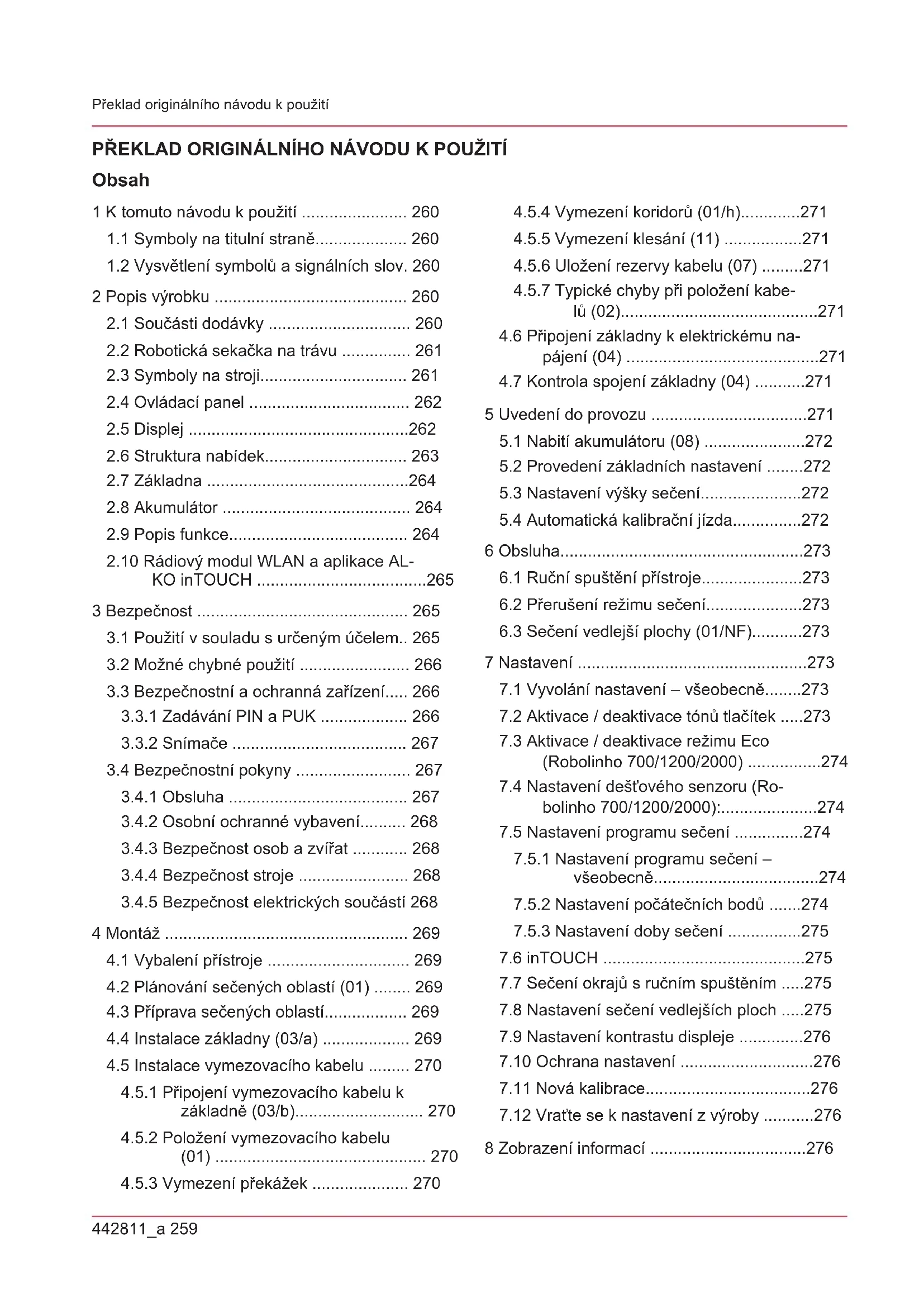 8 Zobrazení informací ..................................276CZ 260 Robolinho K tomuto návodu k použití 9 Údržba a péče ......................................... 277