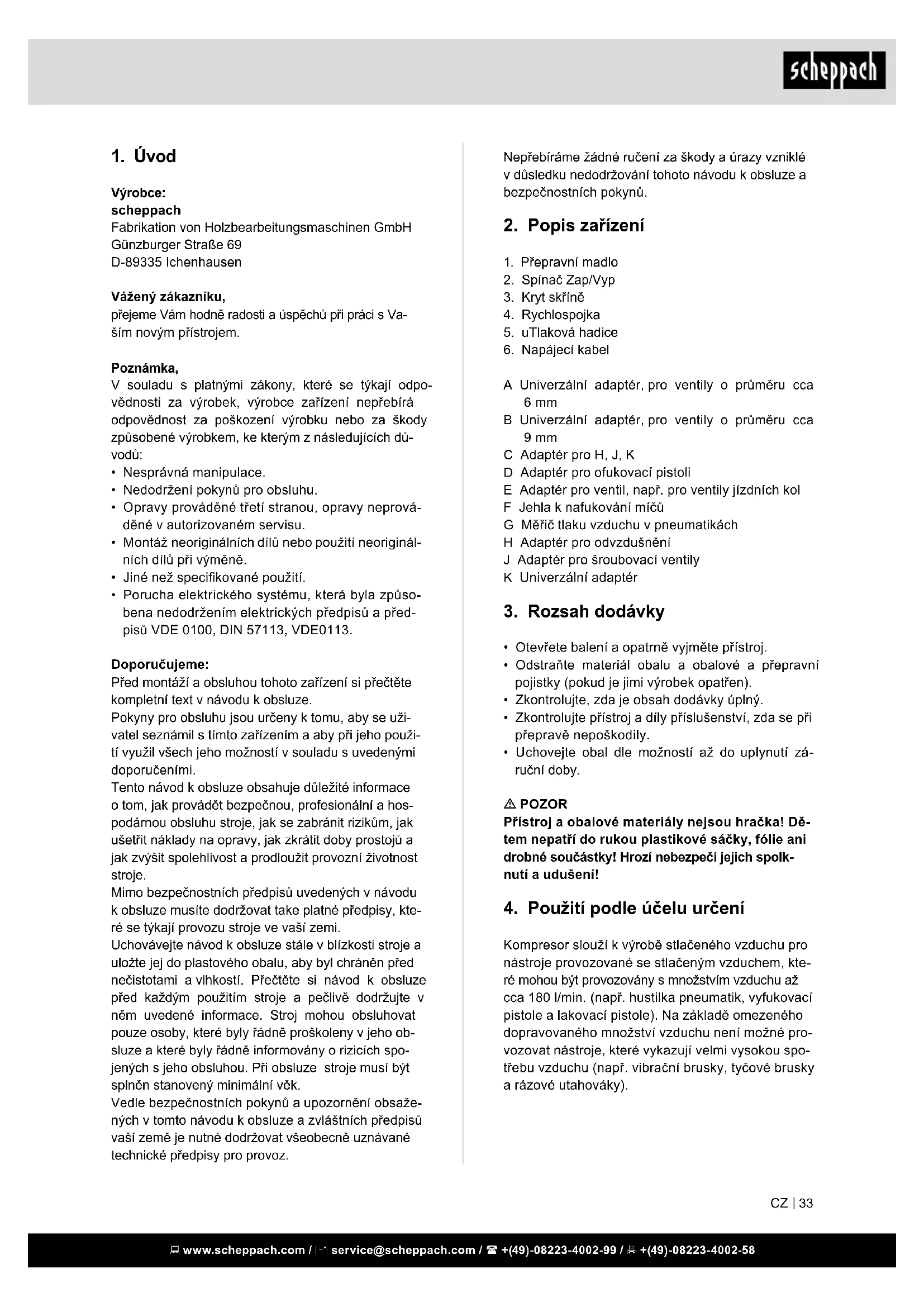 Air Fore 2 - Vzduchový kompresor SCHEPPACH - Bezplatný návod k obsluze