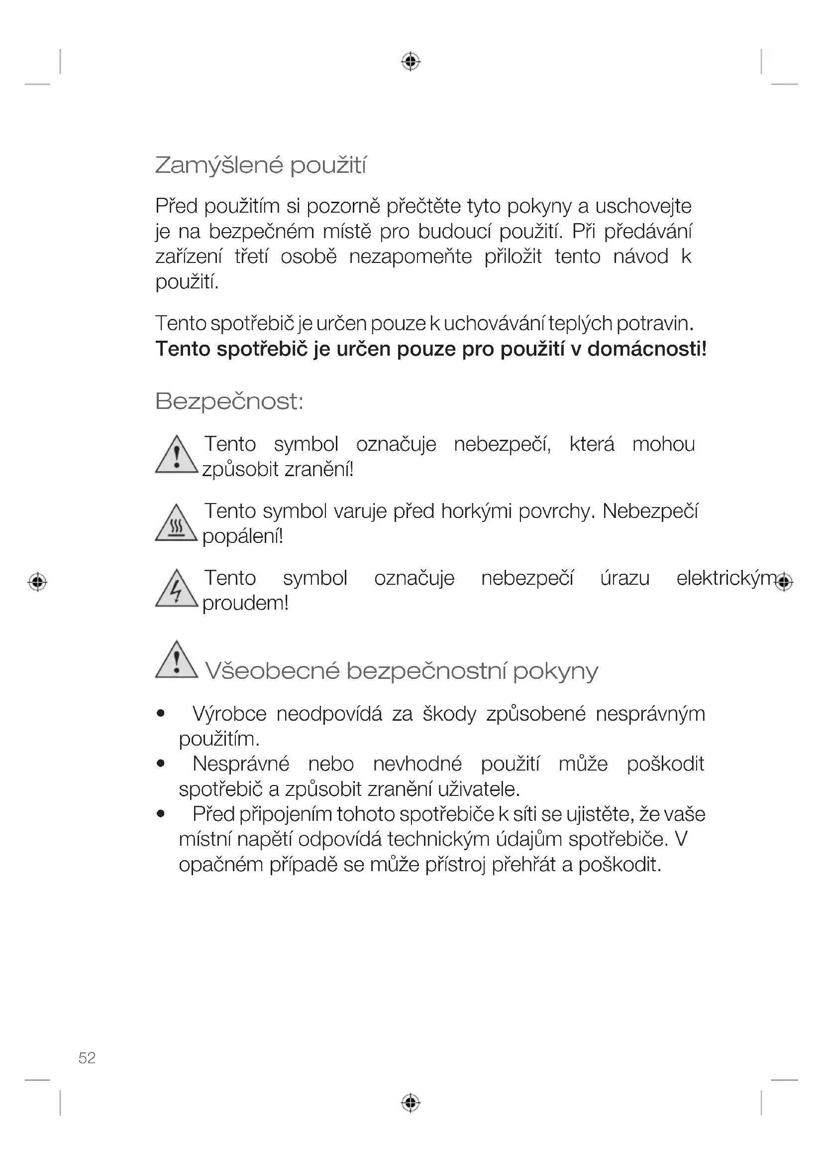 - Zařízení není určeno k provozu pomocí externího časovače nebo samostatného systému dálkového ovládání. Zvláštní bezpečnostní pokyny Výstraha! Abyste předešli možnému zranění/poškození zařízení, úrazu elektrickým proudem a nebezpečí požáru.