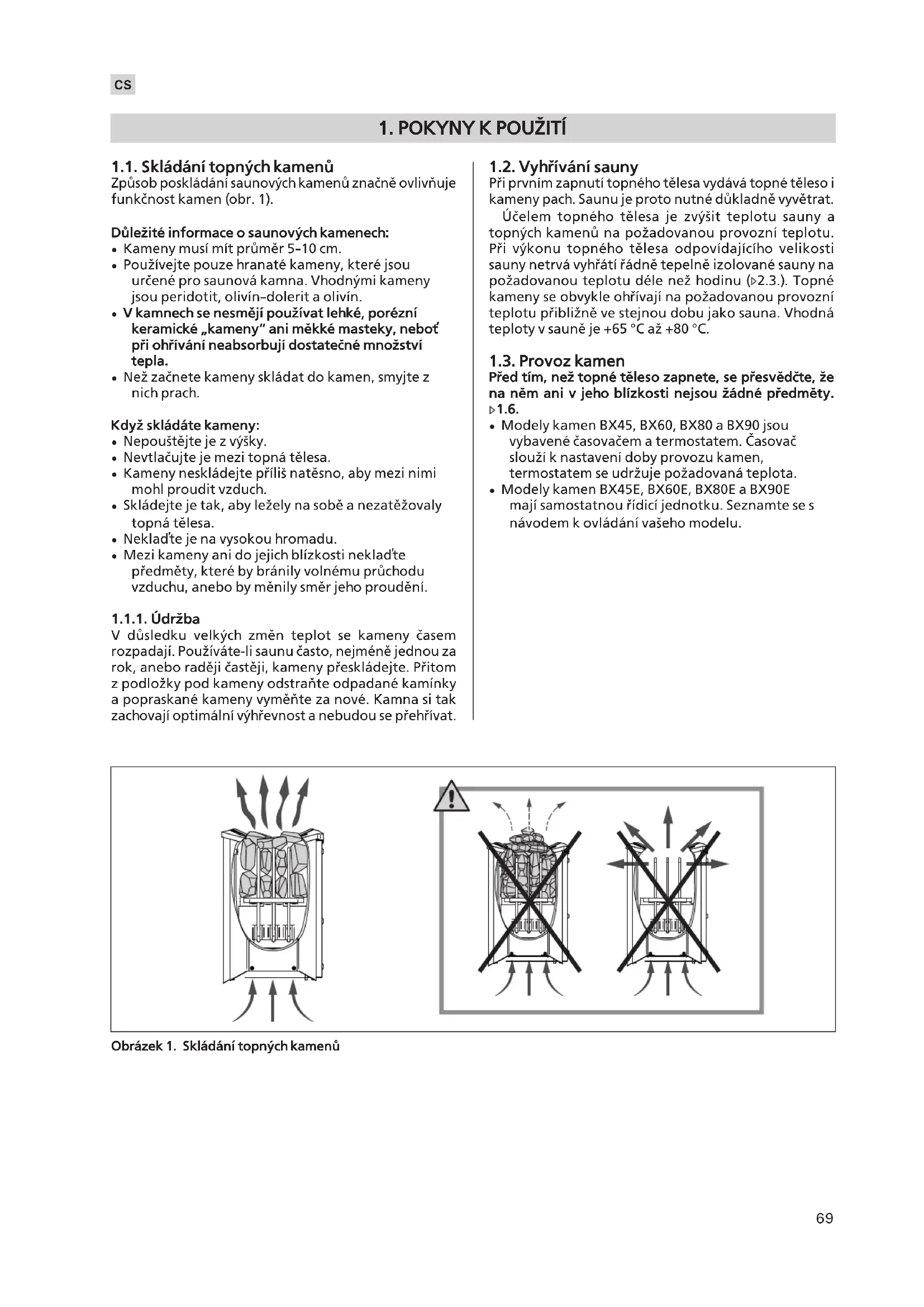 1.1. Skládání topných kamenù Zpùsob poskládání saunových kamenù znaènì ovlivòuje funkènost kamen (obr. 1). Dùle¾ité informace o saunových kamenech: