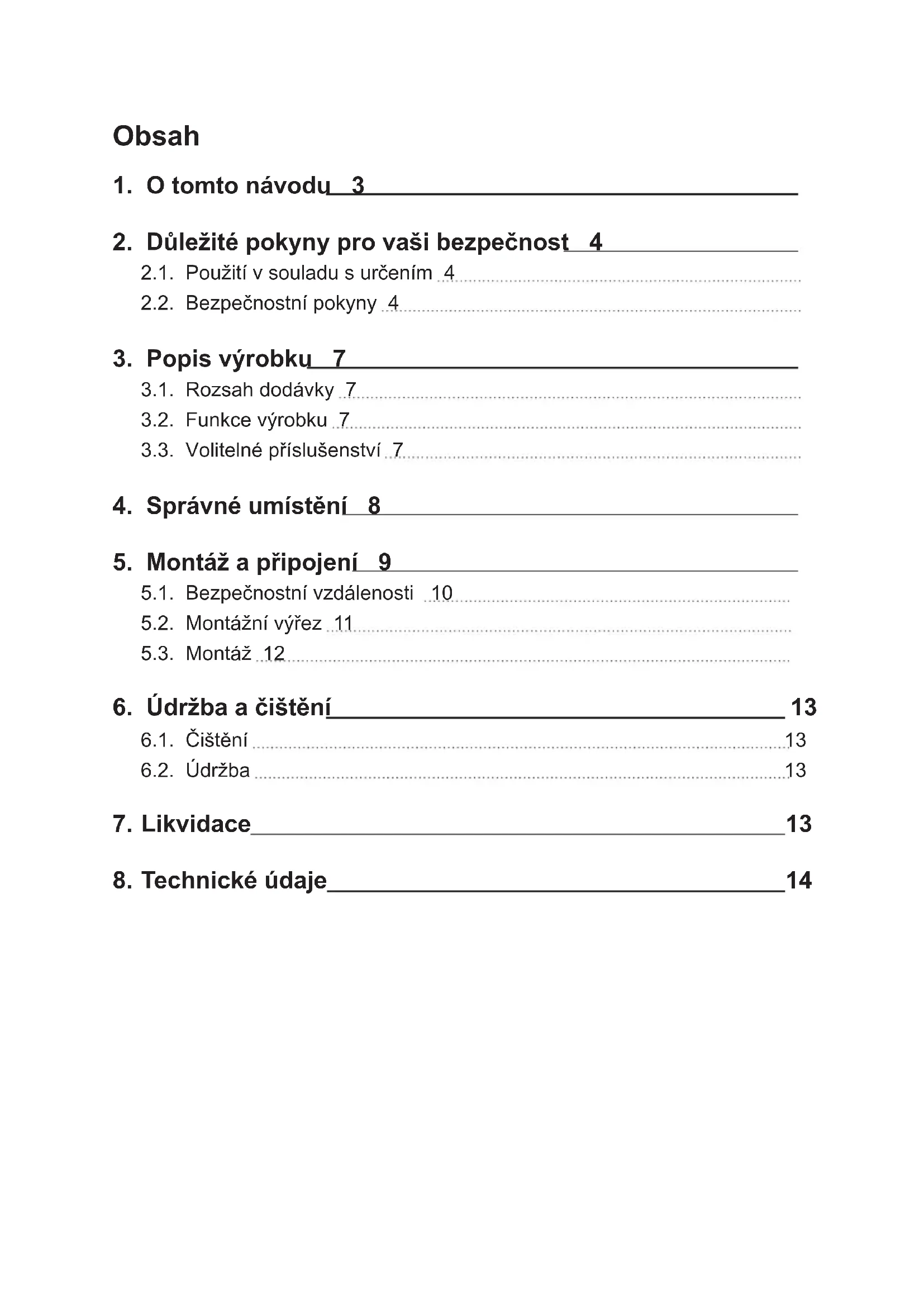 5.1. Bezpečnostní vzdálenosti 10 5.2. Montážní výřez 11 5.3. Montáž 12