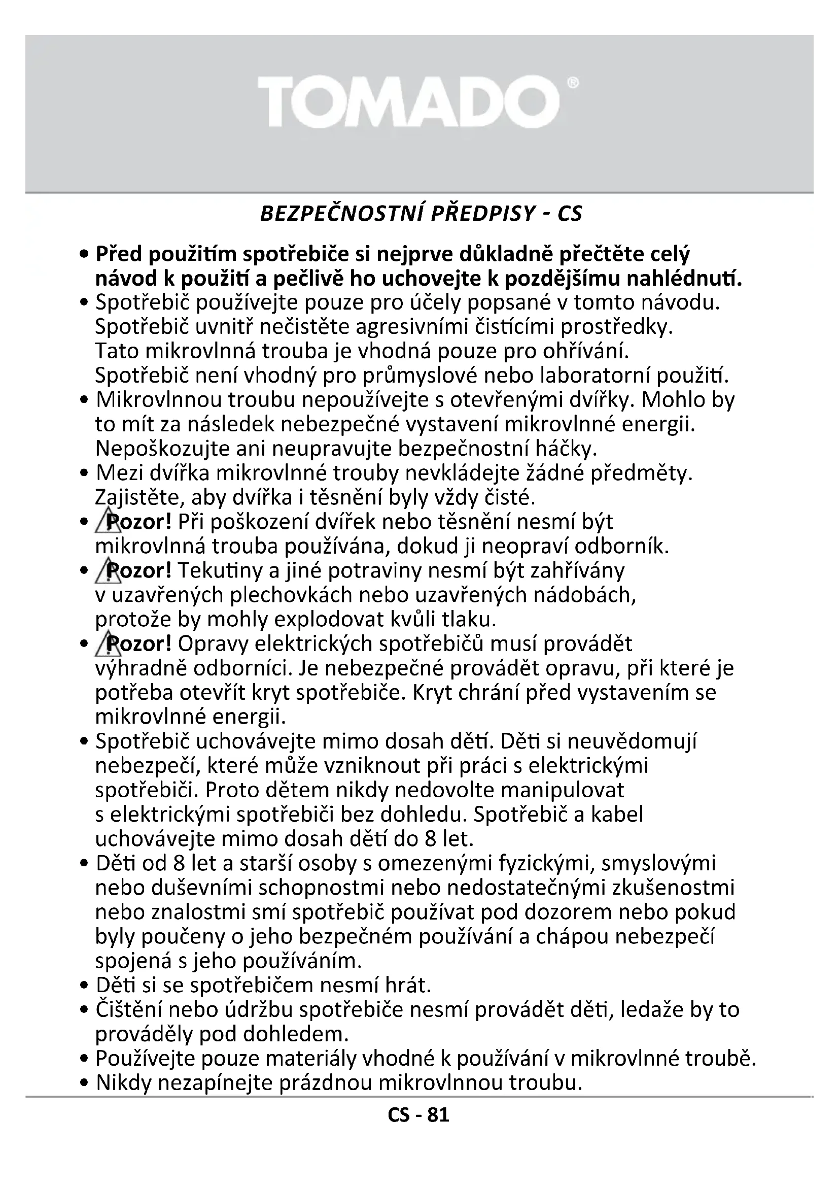 TMS2002B - Mikrovlnná trouba Tomado - Bezplatný návod k obsluze