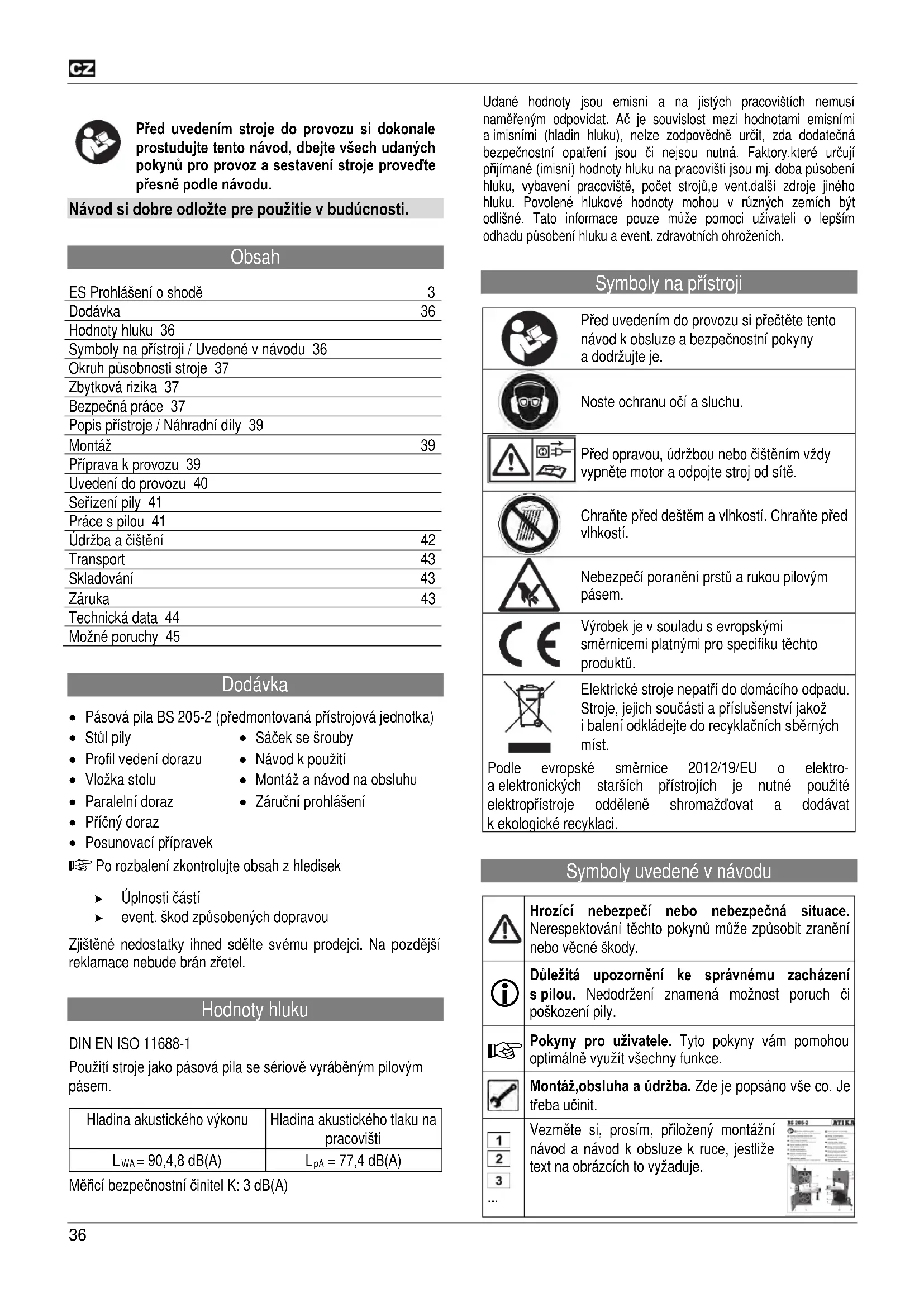 Prostudujte si tutokapitolu préd uvedenim stroje do provozu.Dbejte peclive vsech uvedenych pounu a soucasne vsech bezpecnostnich opatreni platicich ve Vasem pracovnim kolektivu spolu s obecnymi bezpecnostnimi opatrenimi platnymi ve Vasizemi.