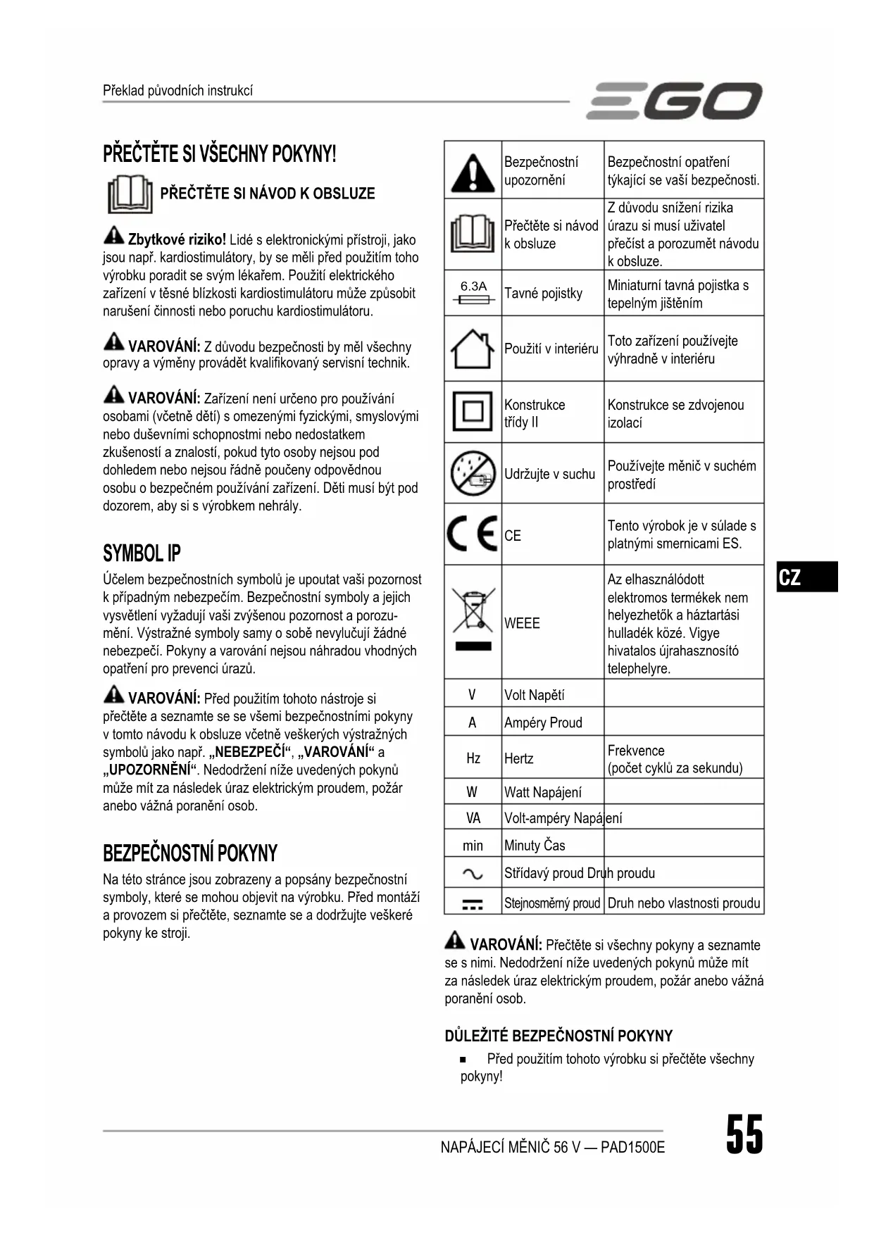 NÁVOD K OBSLUZE PAD1500E EGO