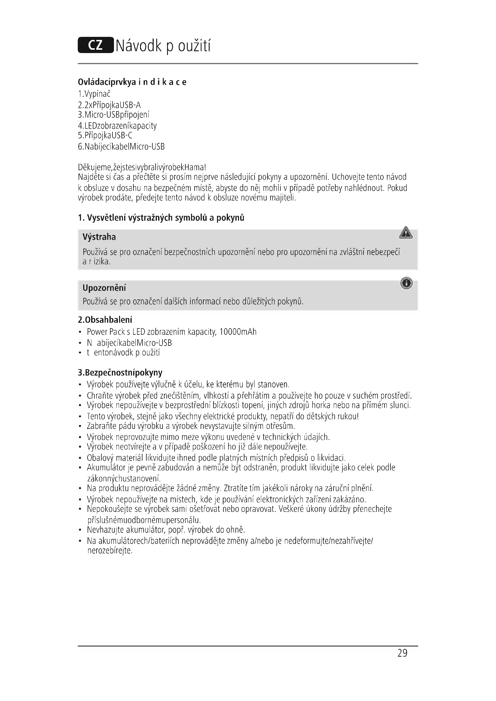Děkujeme, že jste si vybrali výrobek Hama! Najděte si čas apřečtěte si prosím nejprve následující pokyny aupozornění. Uchovejte tento návod kobsluze vdosahu na bezpečném místě,abyste do nějmohli vpřípadě potřeby nahlédnout. Pokud výrobek prodáte, předejte tento návod kobsluze novému majiteli.
