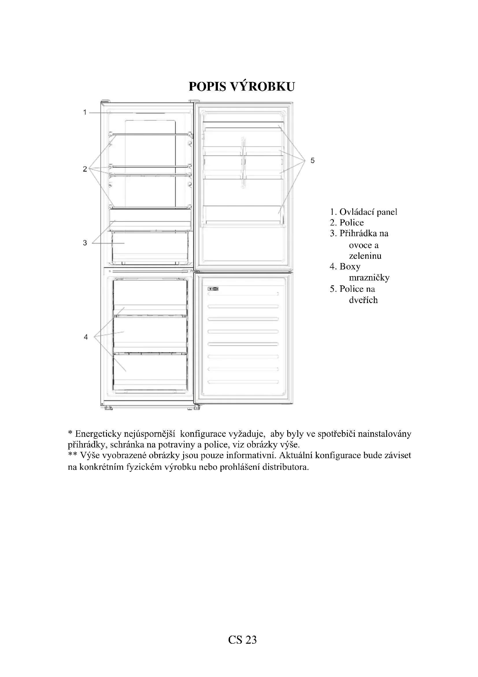 - Energeticky nejúspornější konfigurace vyžaduje, aby byly ve spotřebiči nainstalovány přihrádky, schránka na potraviny a police, viz obrázky výše. ** Výše vyobrazené obrázky jsou pouze informativní. Aktuální konfigurace bude záviset na konkrétním fyzickém výrobku nebo prohlášení distributora.