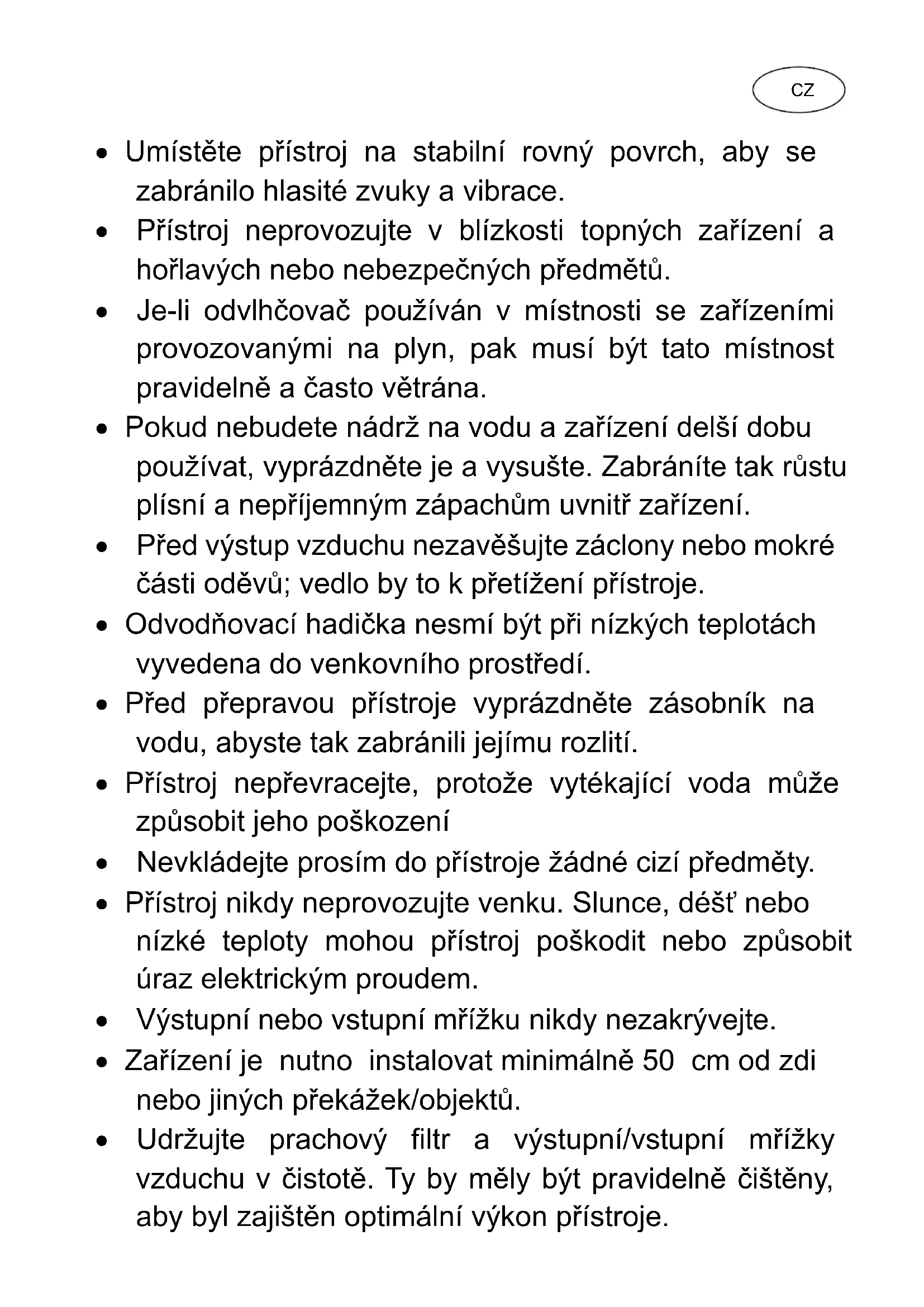 - Je-li odvlhčovač používán v místnosti se zařízeními provozovanými na plyn, pak musí být tato místnost pravidelně a často větrána.
