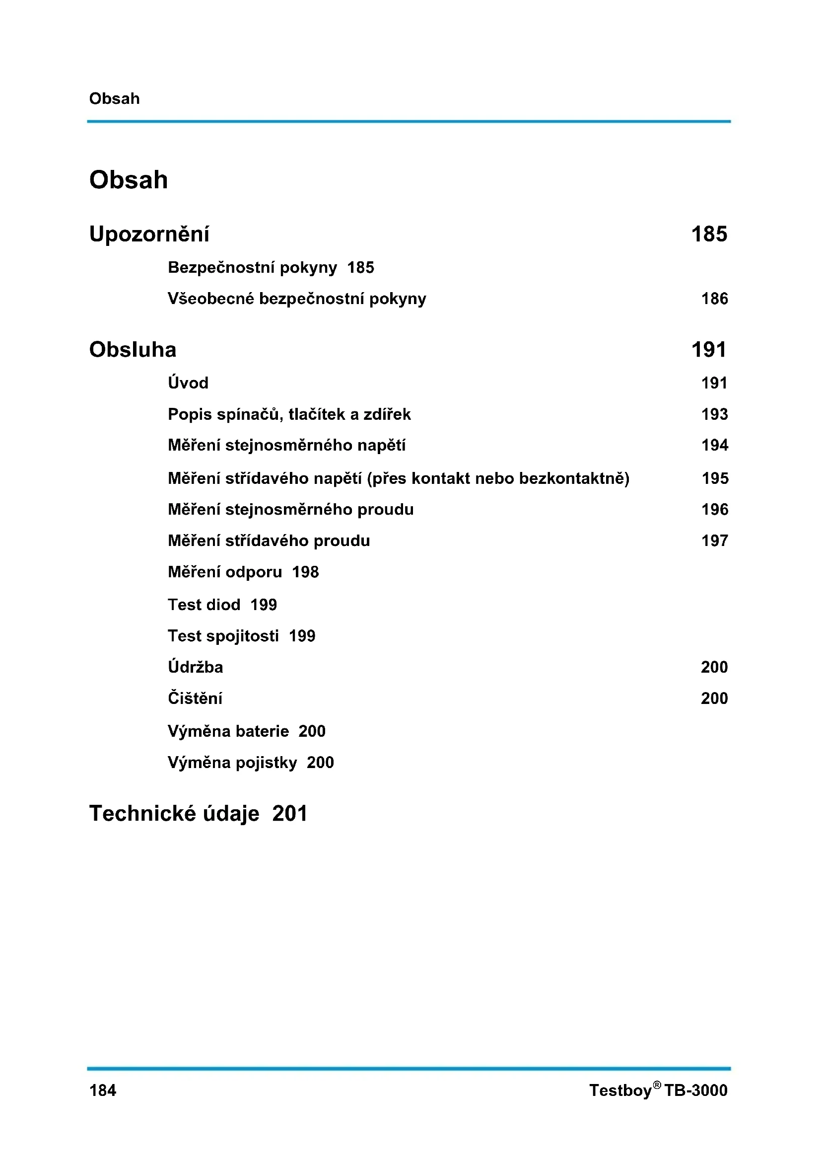 TB3000 - Multimetr Testboy - Bezplatný návod k obsluze