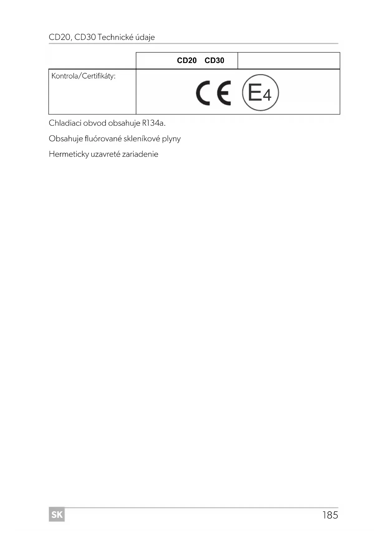 Chladicí okruh obsahuje médium R134a. Obsahuje fluorované skleníkové plyny Hermeticky uzavřeným zařízením Kontrola/certifikáty: CD20 CD30