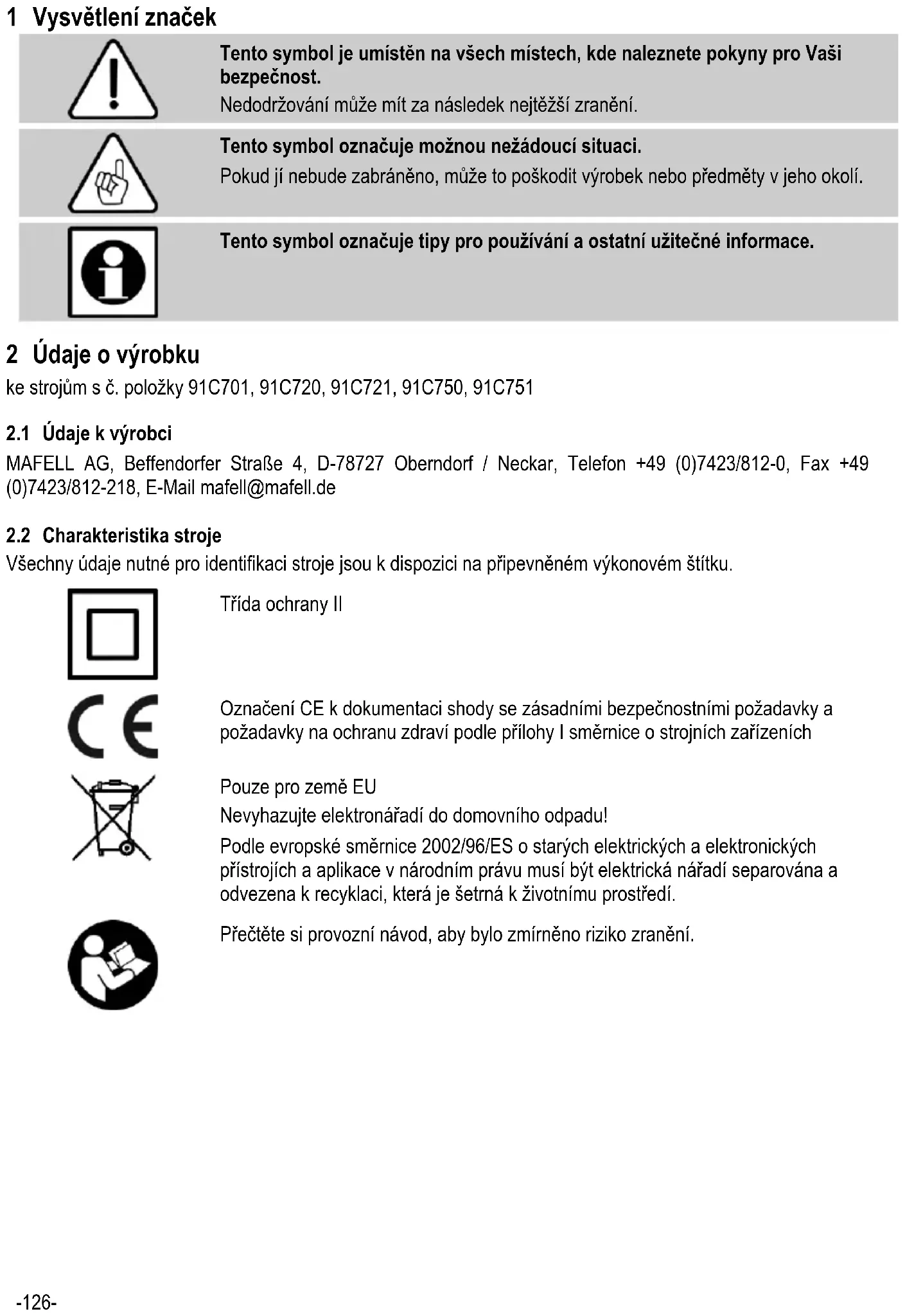 2 Údaje o výrobku ke strojům s č. položky 91C701, 91C720, 91C721, 91C750, 91C751