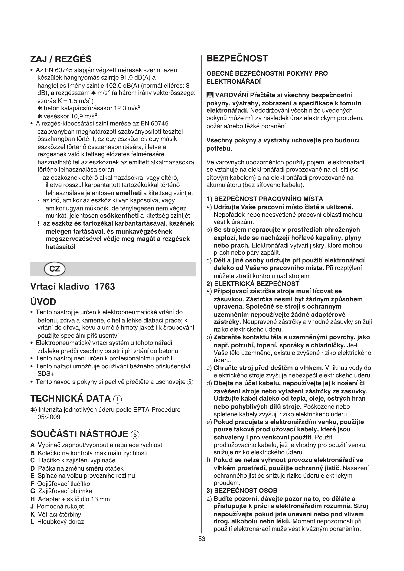Vŕtací kladivo 1763 ÚVOD