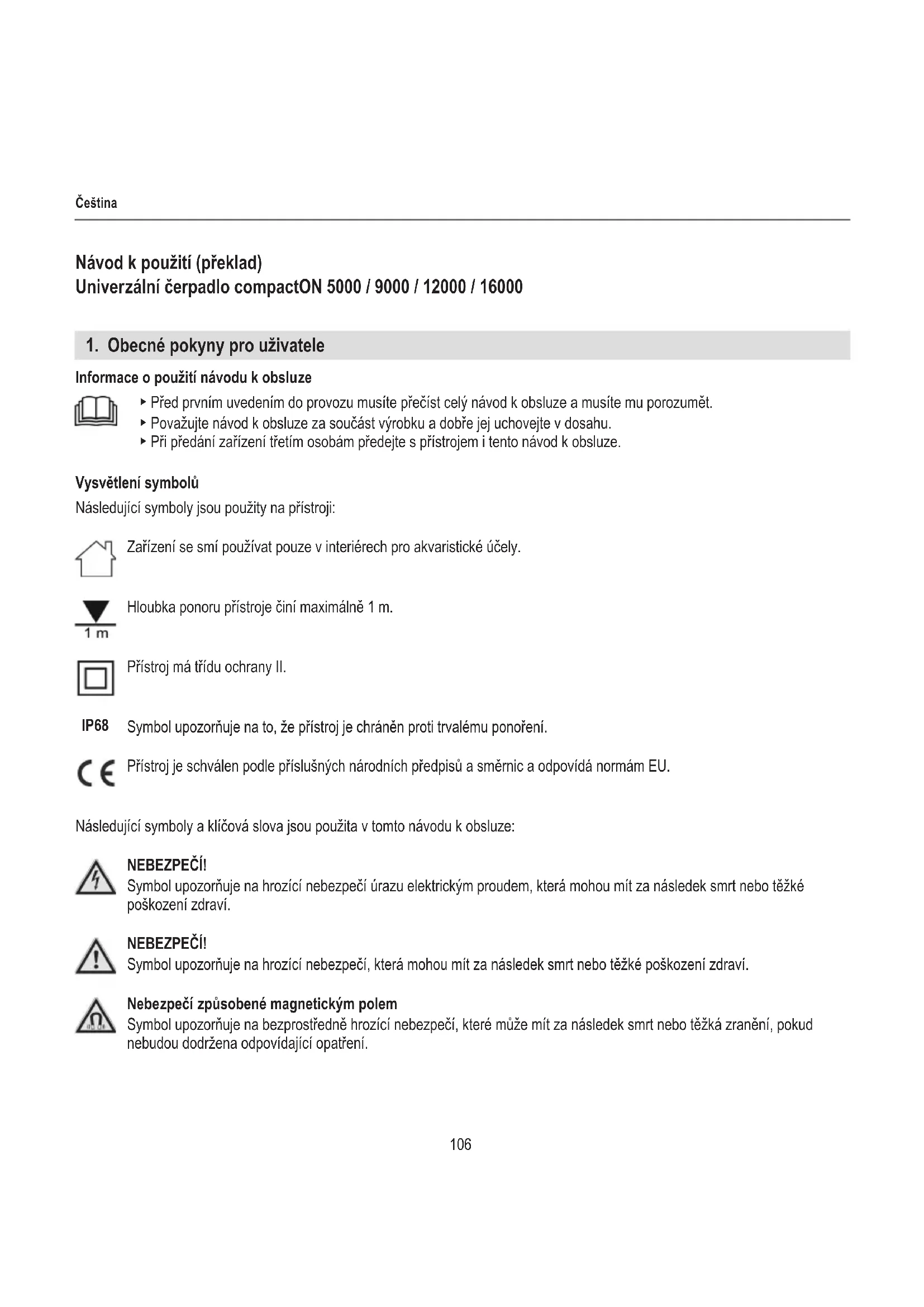 Patrz strona 3.106 Čeština Návod k použití (překlad) Univerzální čerpadlo compactON 5000 / 9000 / 12000 / 16000