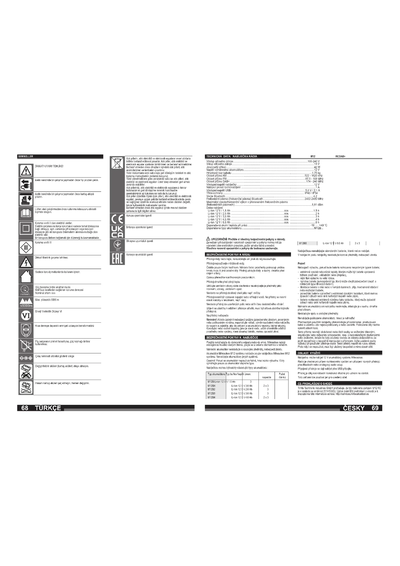 M12 RCDAB+0 - Radio MILWAUKEE - Bezplatný návod k obsluze
