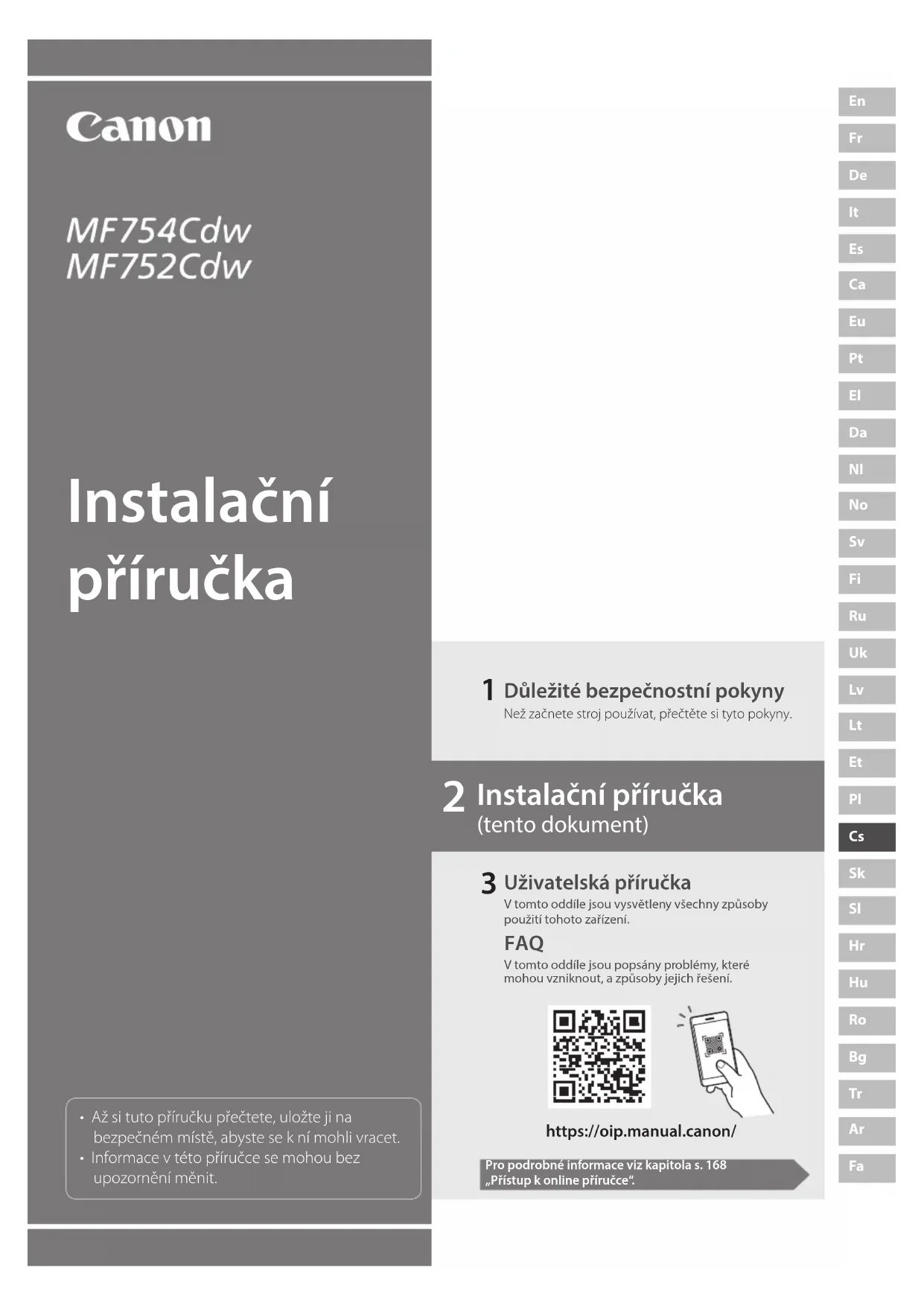 Instalační příručka (tento dokument) Instalační příručka https://oip.manual.canon/