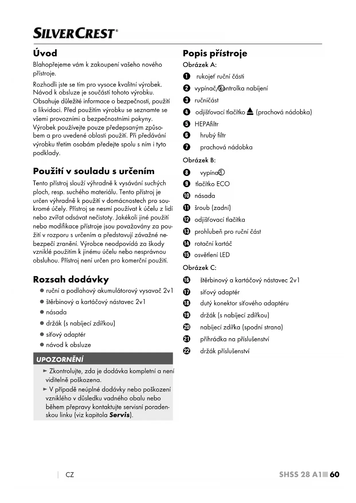 SHSS 28 A1 - Vysavač SILVERCREST - Bezplatný návod k obsluze