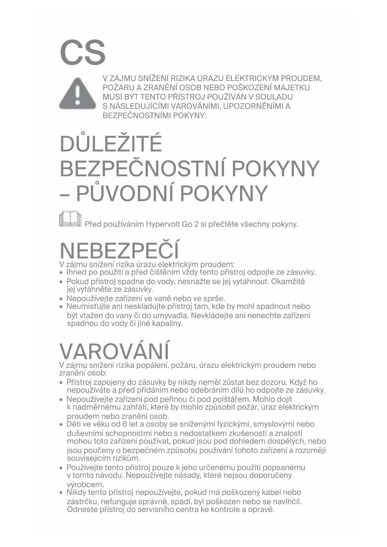 Před používáním Hypervolt Go 2 si přečtěte všechny pokyny. NEBEZPEČÍ Vzájmu snížení rizika úrazu elektrickým proudem: