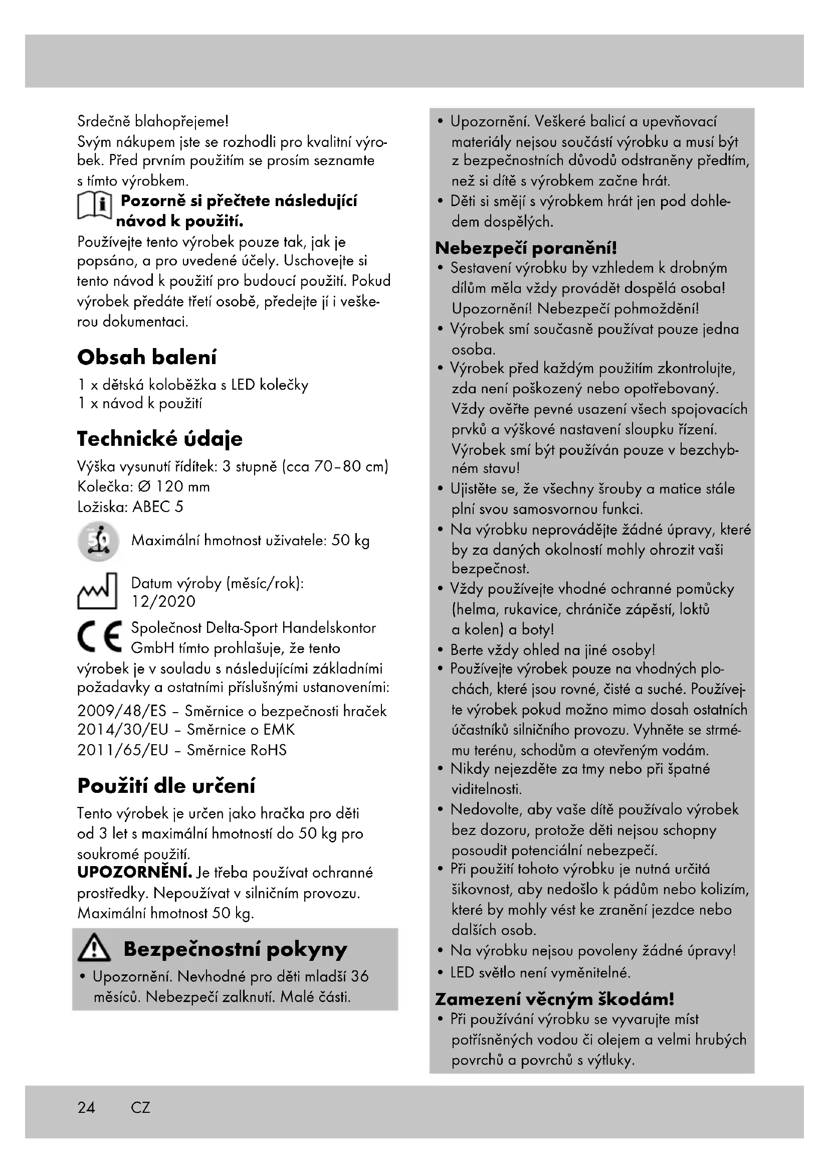 - Pri použiti tohoto vyrobku je nutná urcitá sikovnost, aby nedoslo k pádüm nebo kolizim, ktere by mohly vest ke zraněni jezdce nebo dalšich osob.