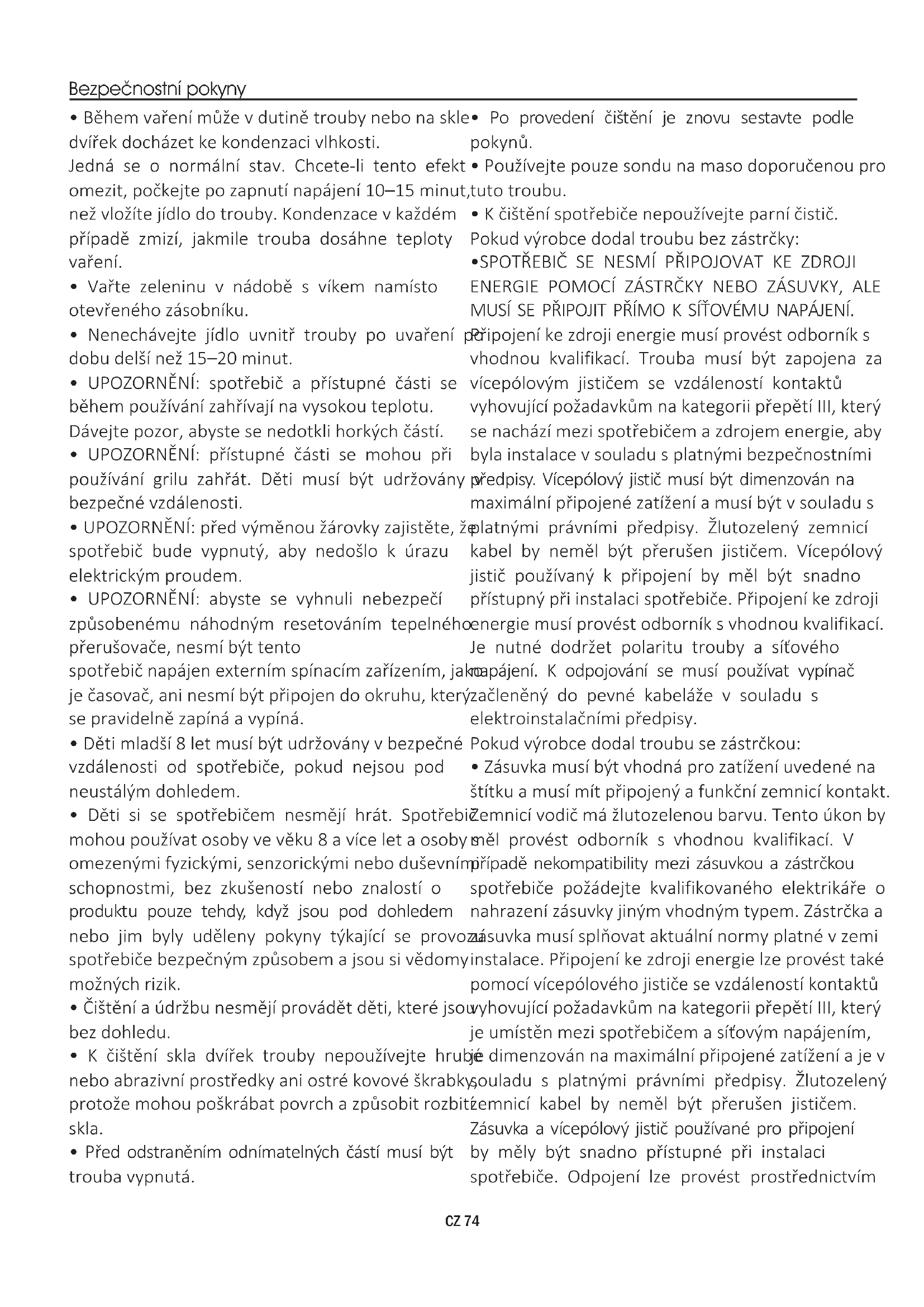 - Nedodržení výše uvedených pokynů může ohrozit bezpečnost spotřebiče a zneplatnit záruku.