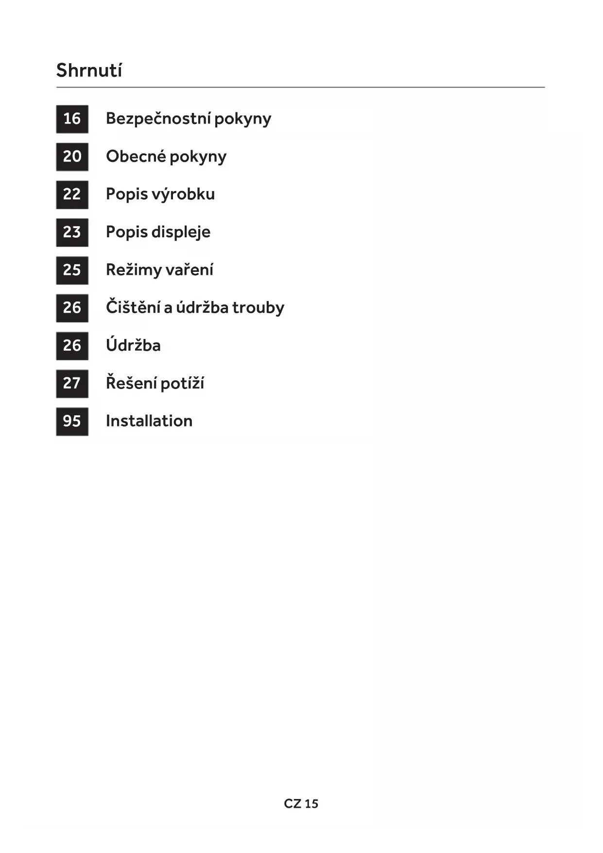 - VAROVÁNÍ: přístupné součásti mohou být během používání trouby horké. Zabraňte přístupu malých dětí na menší než bez- pečnou vzdálenost.