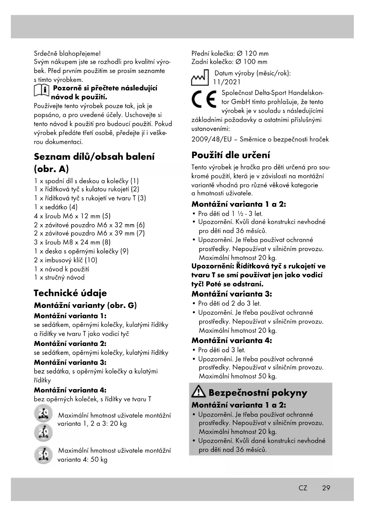Vyrobek byl vyroben s velkou peci a za stale kontroly. DELTA-SPORT HANDELSKONTOR GmbH poskytuje koncovym privatnim zakaznikum na tento vyrobek tri roky zarukey od data nakupu (zaručni lhuta) podle následujíci ustanoveni.