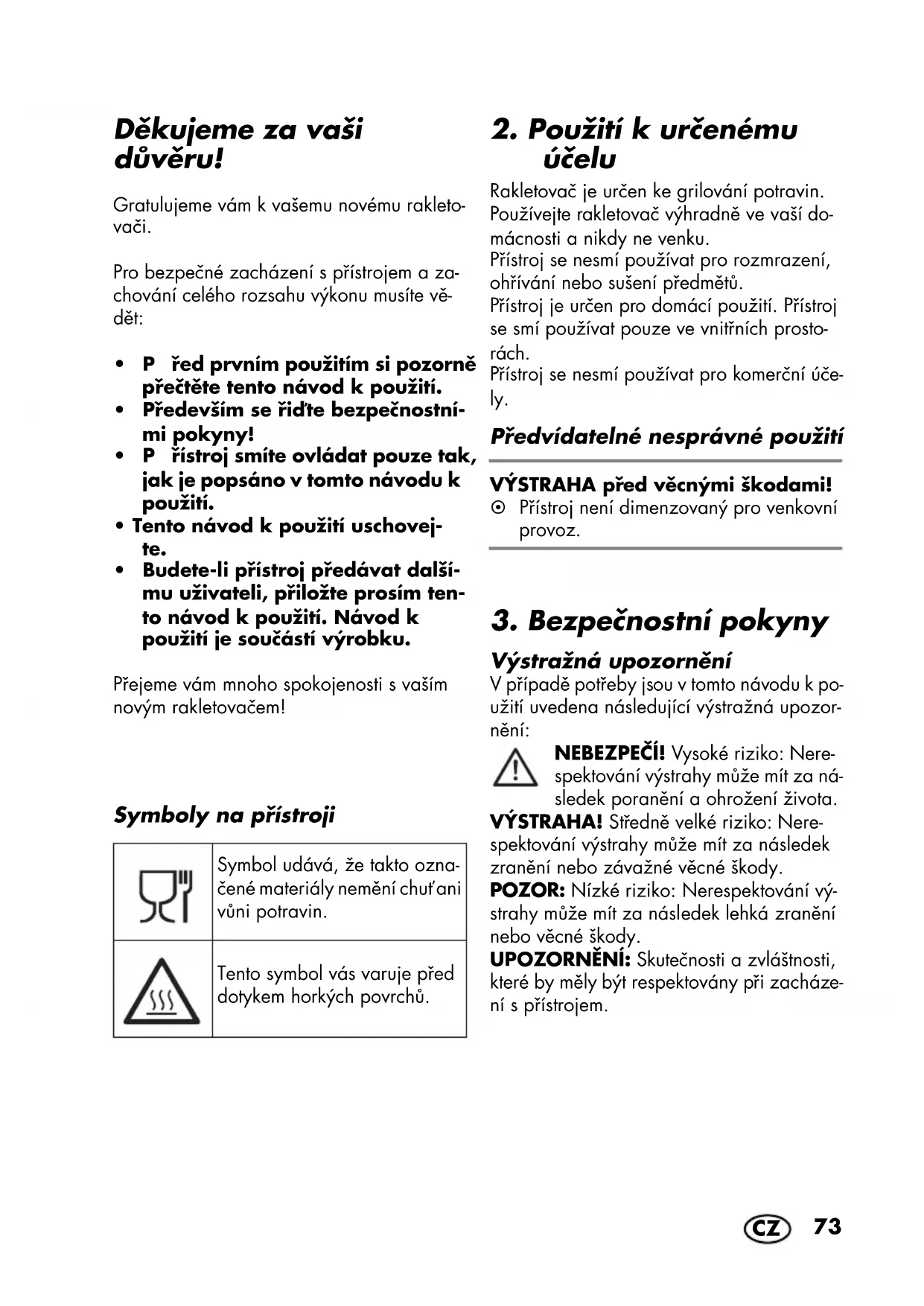 - Budete-li přístroj předávat další- mu uživateli, přiložte prosím ten- to návod k použití. Návod k použití je součástí výrobku. Přejeme vám mnoho spokojenosti s vaším novým rakletovačem! Symboly na přístroji