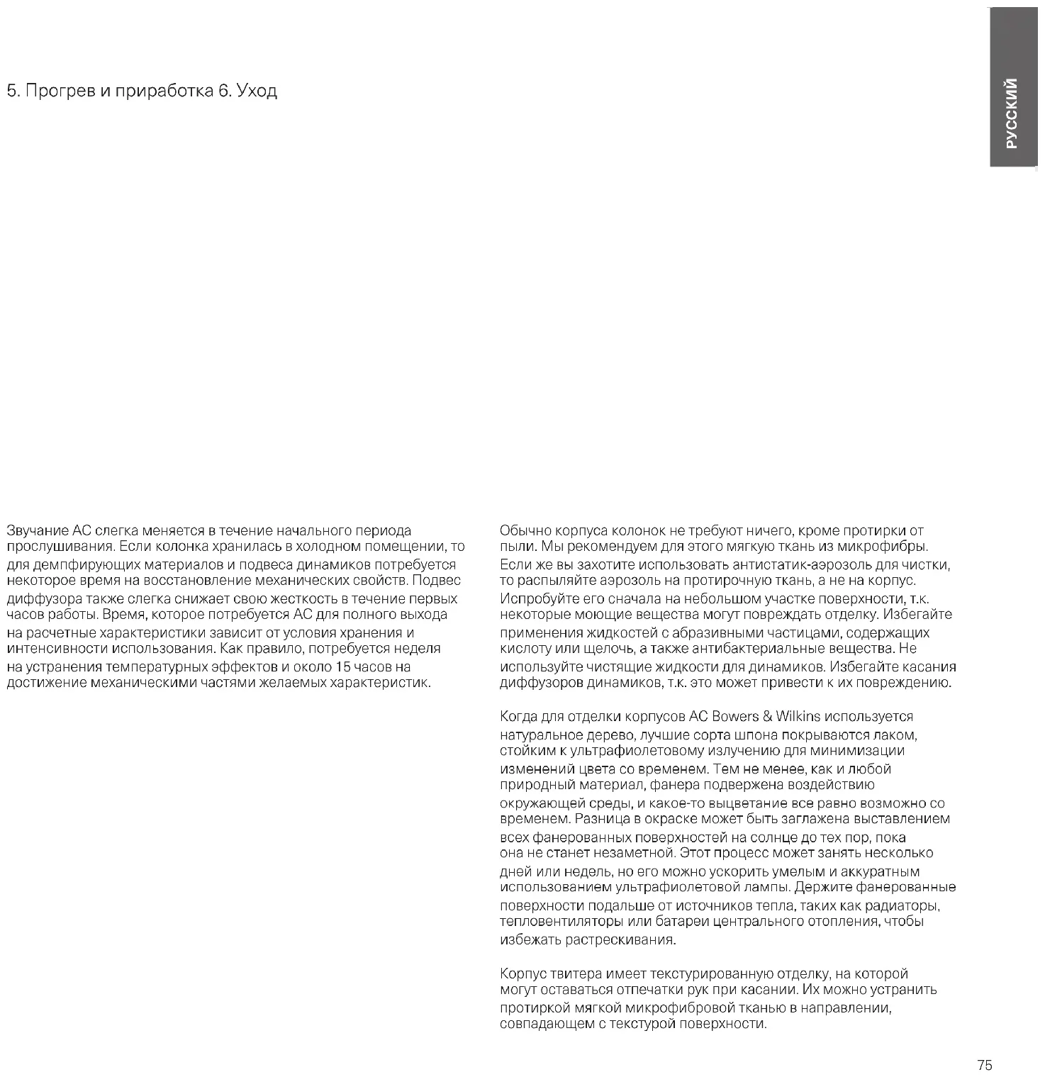 Tyto reprosoustavy Bowers & Wilkins jsou opatreny kvaltinr pravou drevenou dyhou, potazenou UV rezistentnim lakem, coz minimalizuje zmemy jejho zarabveni vivem svetla. Niemene jako kazdpy prirodni material, podleha i tato dyha livvu okolniho prostredi. Pripadne rozdily v zarabveni Jednotlivych ploch mohou byt srovnany vystavenim celeho povrchu rovnomernemu pusobeni slunechniho svetla tak dlouho, dokud Rozdil nezmizi. Tento proces muze trvat nekolik dnu ci tydnu, Ize jei vsak urychlit opatym pouzitim UV lampy. Vyrobky opatrene drevenou dyhou by se takemely nachazet v bezprostredni blizkosti zdrojutepla, jako jsou napr. radiatory ci horkovzdu-sné ventilatory, zabranine tak moznemu popraskani dyhy.