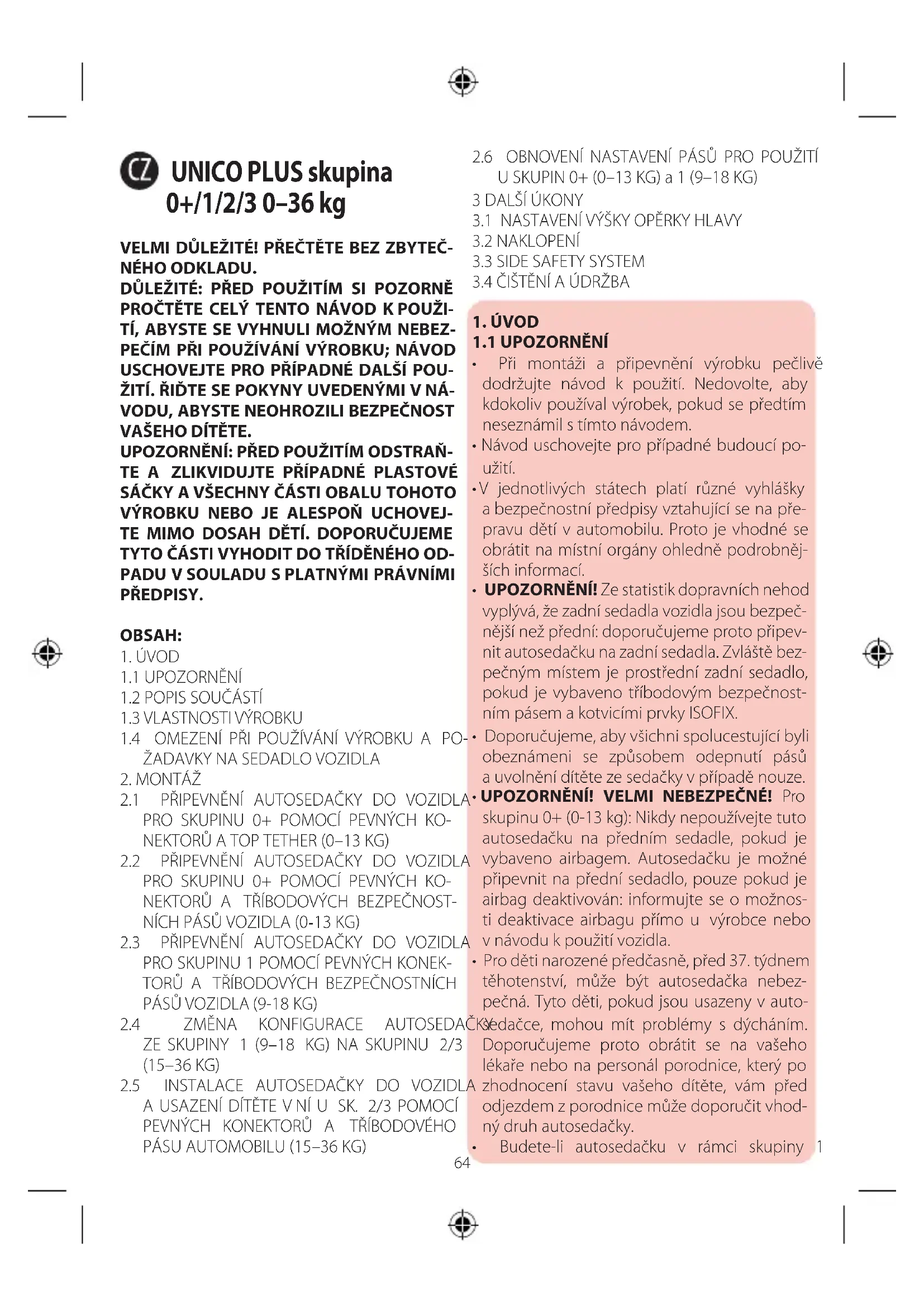 Unico Plus - Autosedačka CHICCO - Bezplatný návod k obsluze