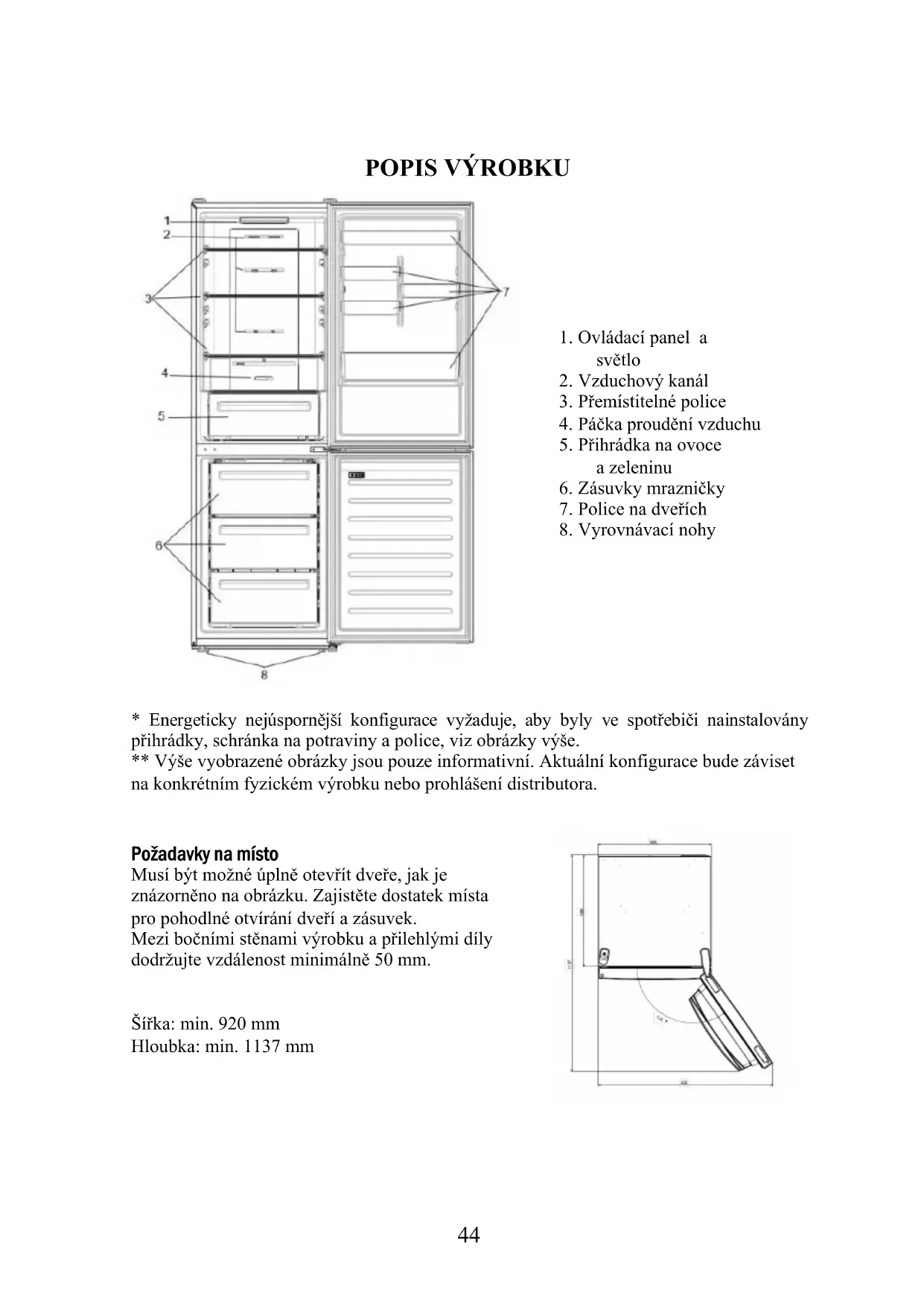 Energeticky nejuspornejsi konfigurace vyzaduje, aby byly ve spotrebici nainstalovany prihradyk, schranka na potraviny a police, viz obrazky vyse.