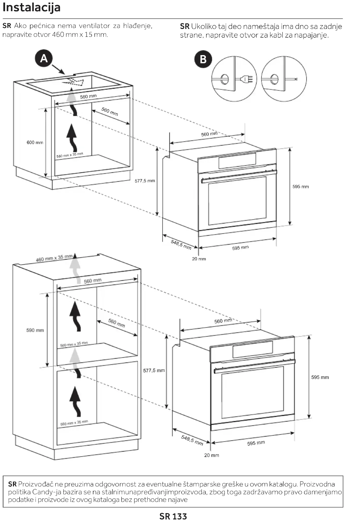 Vyrobce nenese Žádnou zodpovednost za pripadné škody způsobné nedodržením těchtoPokynú. Trouba musí BYt pripojena k elektrické siti prostřednictvím uzemné zásuvky nebo odpojevače s vice poly, v závislosti na právnich