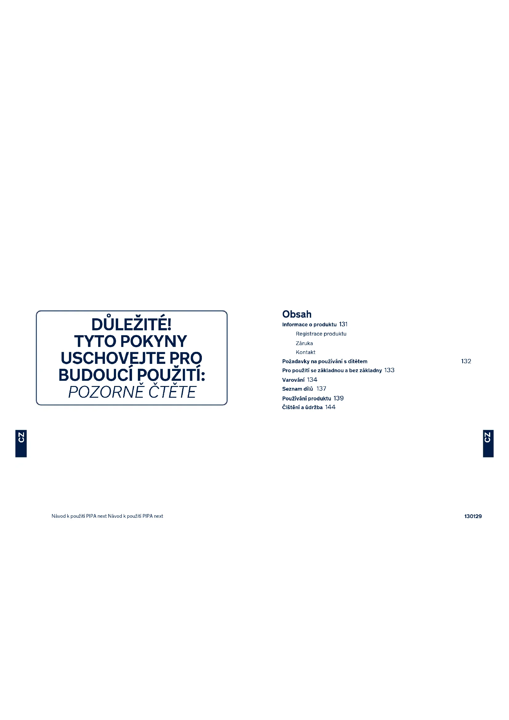 Obsah Informace o produktu 131 Registrace produktu Záruka Kontakt Požadavky na používání s dítětem