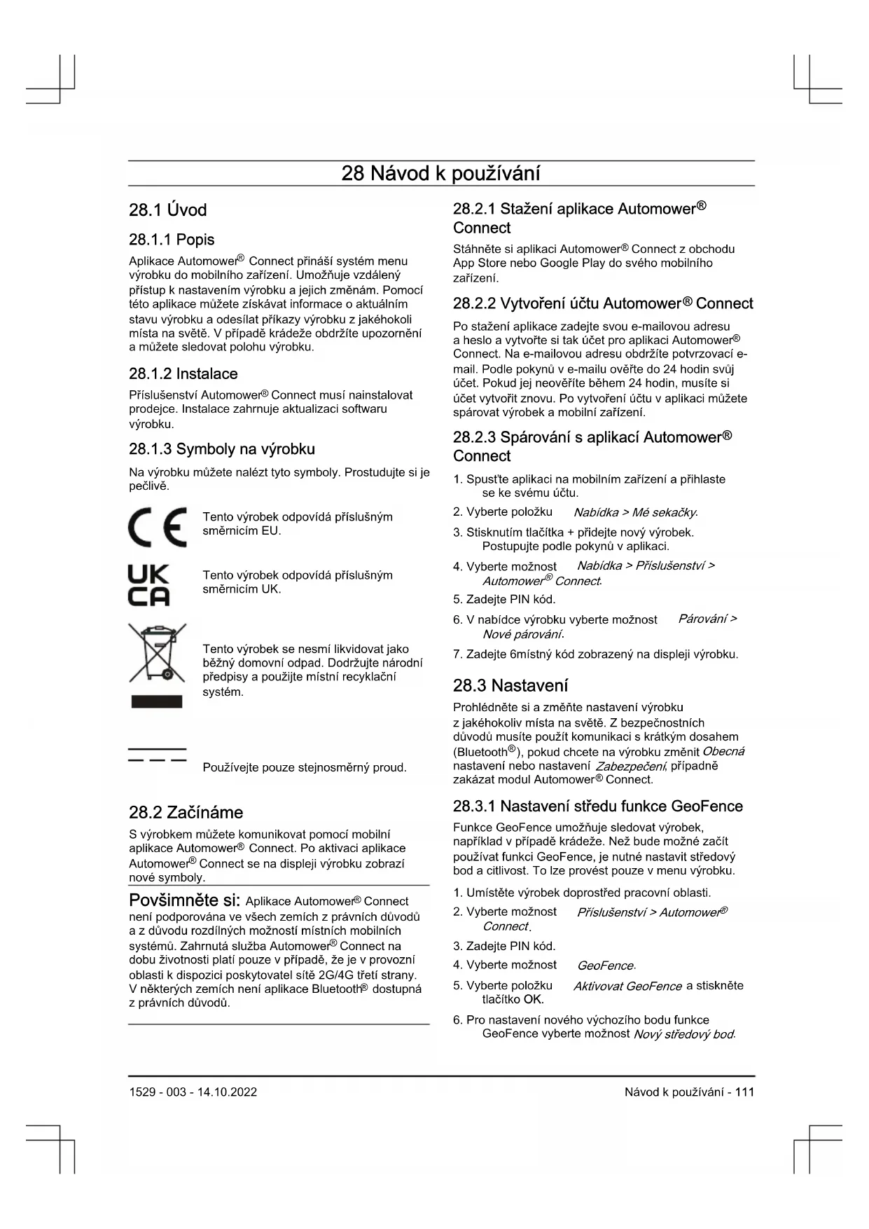 110 - Navodila za uporabo 1529 - 003 - 14.10.202228 Návod kpoužívání
