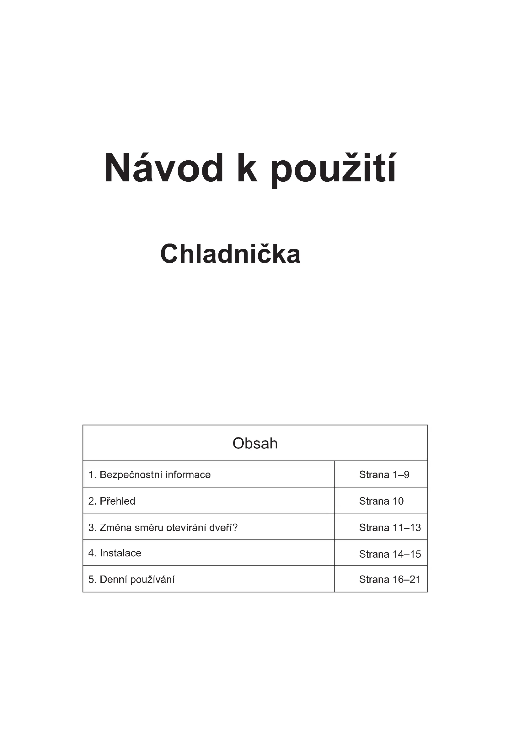 Strana 16–211 Děkujeme vám za zakoupení tohoto výrobku. Před použitím chladničky si pozorně přečtěte tento návod k použití, abyste mohli maximálně využít jejích možností. Uchovejte veškerou dokumentaci pro pozdější použití nebo pro další majitele. Tento výrobek je určen výhradně pro použití v domácnosti nebo pro podobná využití, jako jsou: