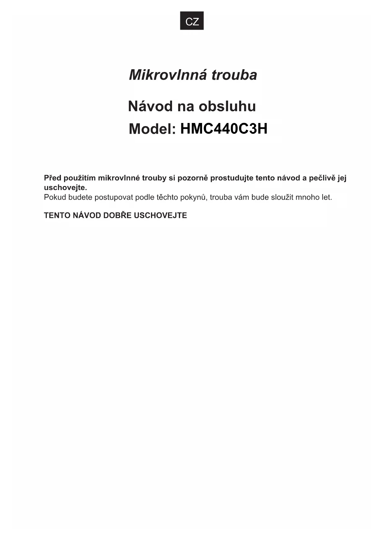CZ-2 HMC440C3HPro snížení rizika požáru, úrazu elektrickým proudem, zranění osob nebo vystavení nadměrné mikrovlnné energii při používání vašeho spotřebiče dodržujte základní opatření, včetně: