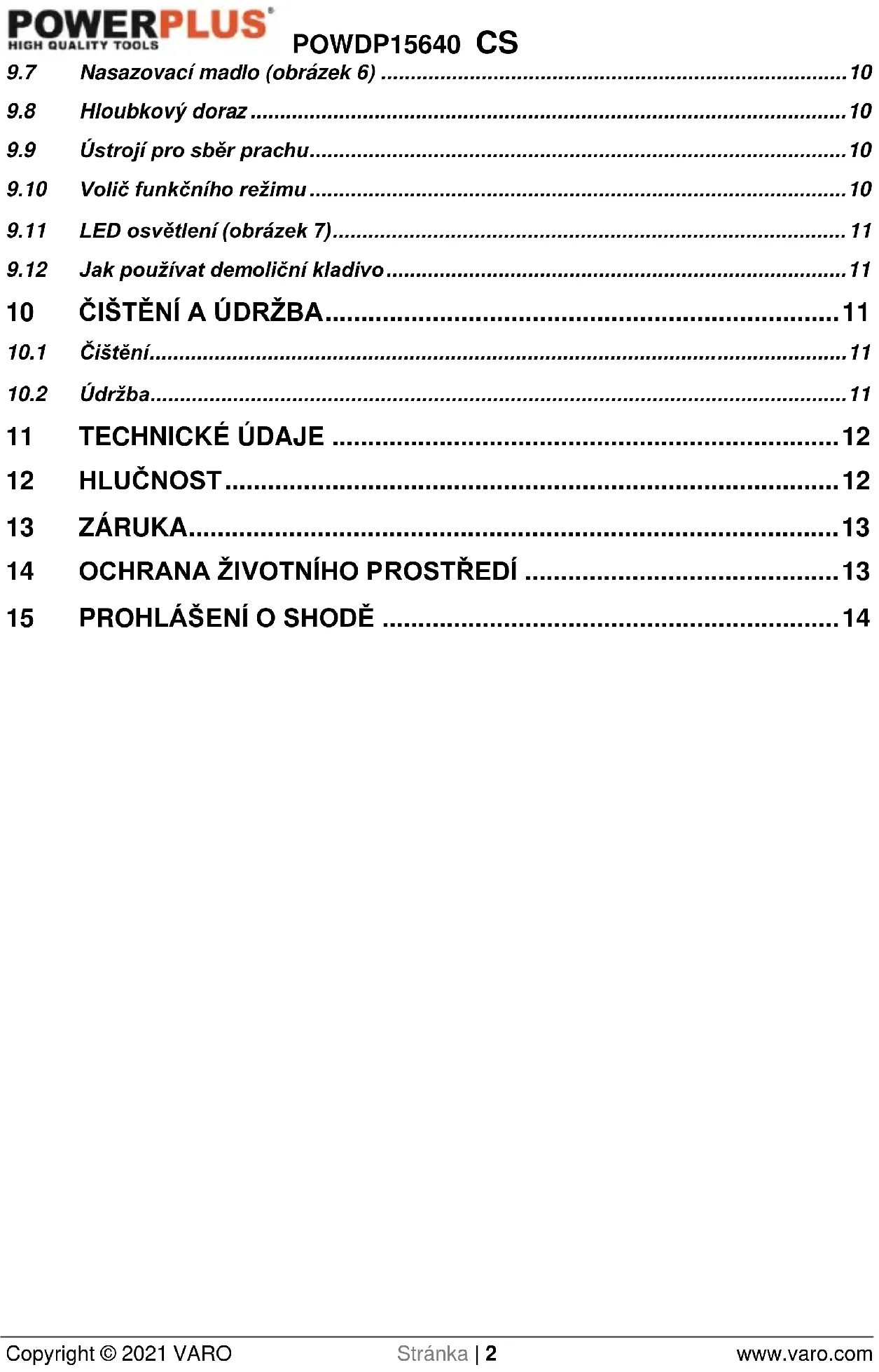 Stáhněte si návod pro váš Vrtačka ve formátu PDF zdarma! Najděte svůj návod POWDP15640 - PowerPlus a vezměte svůj elektronický přístroj zpět do rukou. Na této stránce jsou zveřejněny všechny dokumenty potřebné k používání vašeho zařízení. POWDP15640 značky PowerPlus.