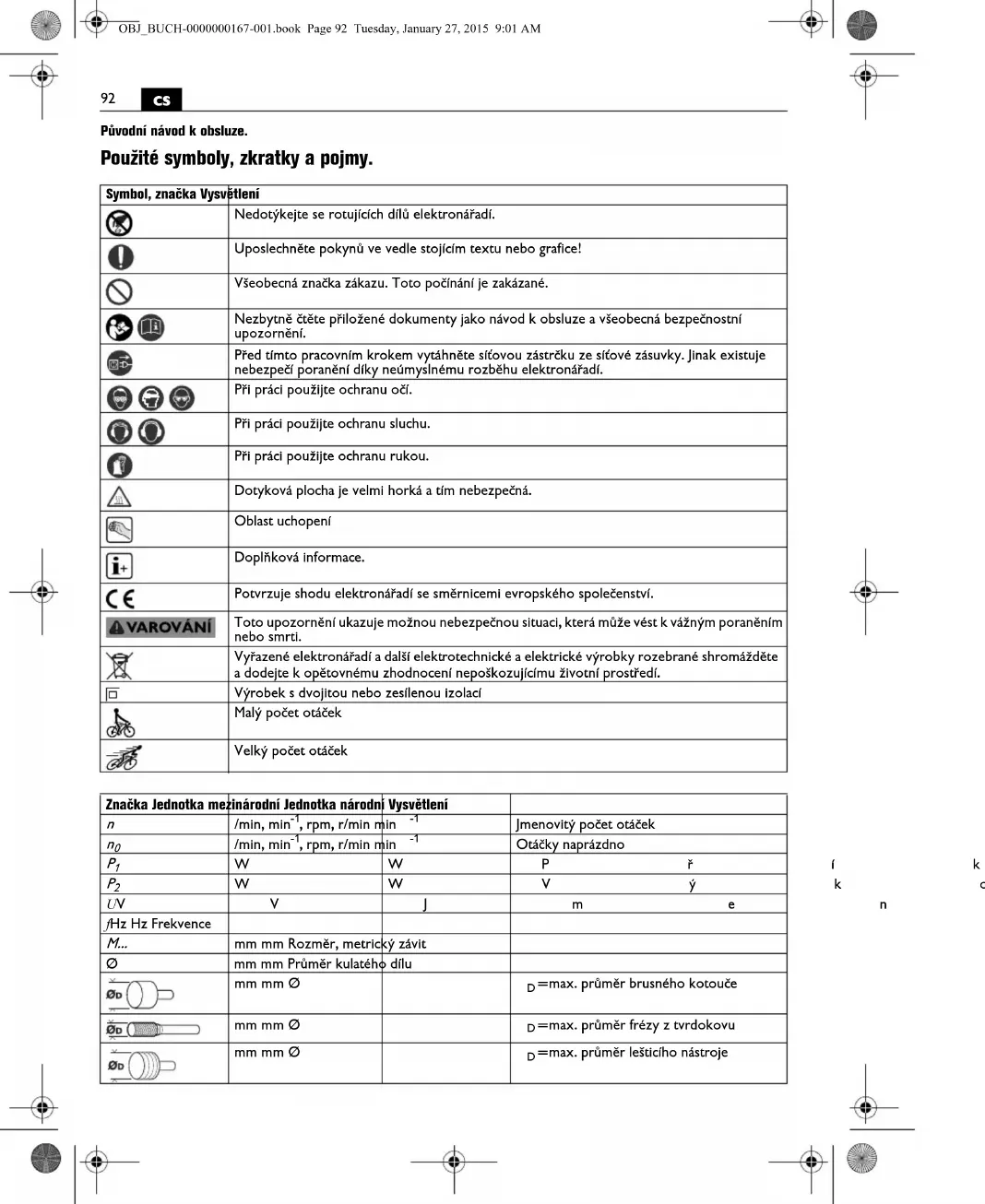 Základní a odvozené jednotky z mezinárodní soustavy jednotek SI. Značka Jednotka mezinárodní Jednotka národní Vysvětlení OBJ_BUCH-0000000167-001.book Page 93 Tuesday, January 27, 2015 9:01 AM94