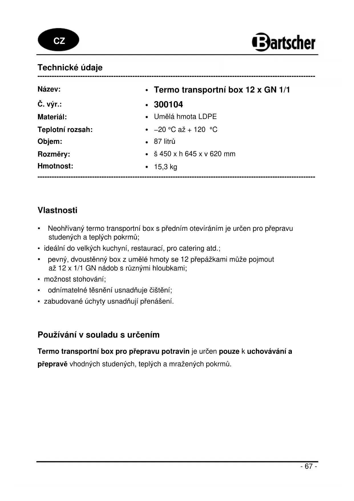 300104 - Nádoba na potraviny BARTSCHER - Bezplatný návod k obsluze