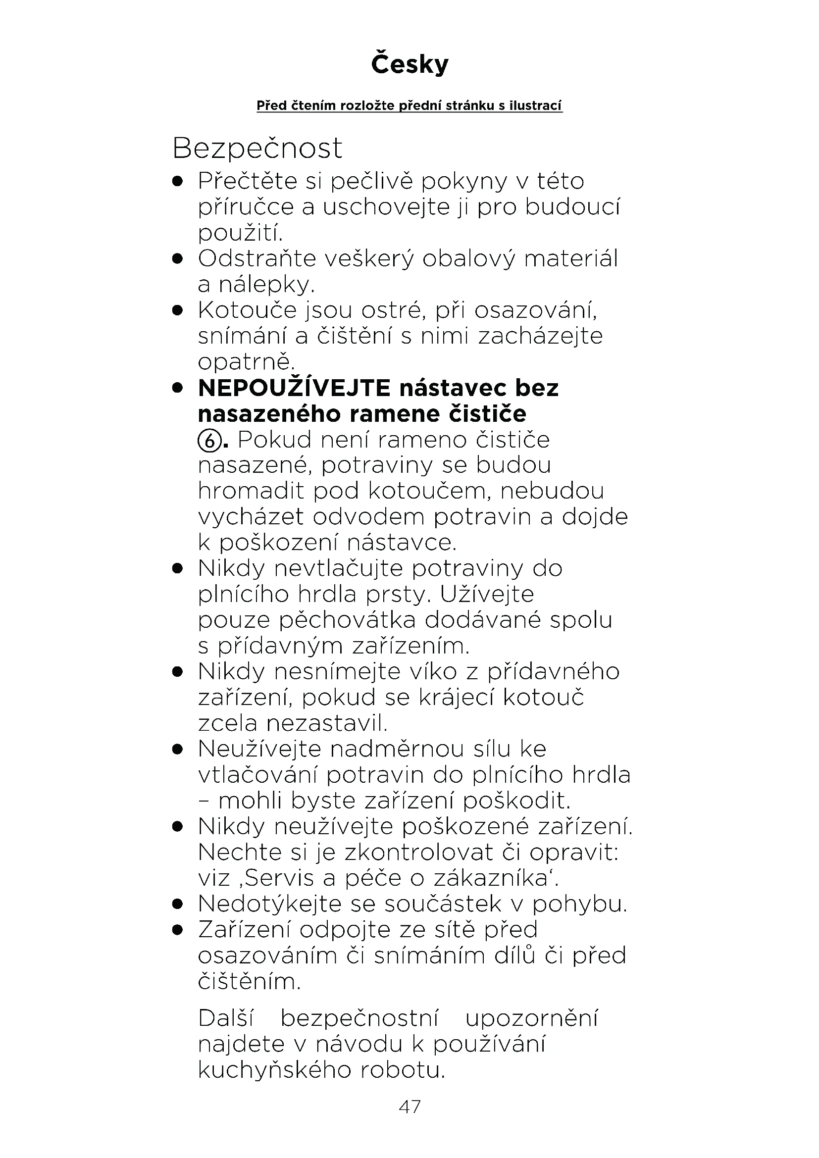 Çin’de üretilmiştir.47 Před čtením rozložte přední stránku s ilustrací Česky Bezpečnost
