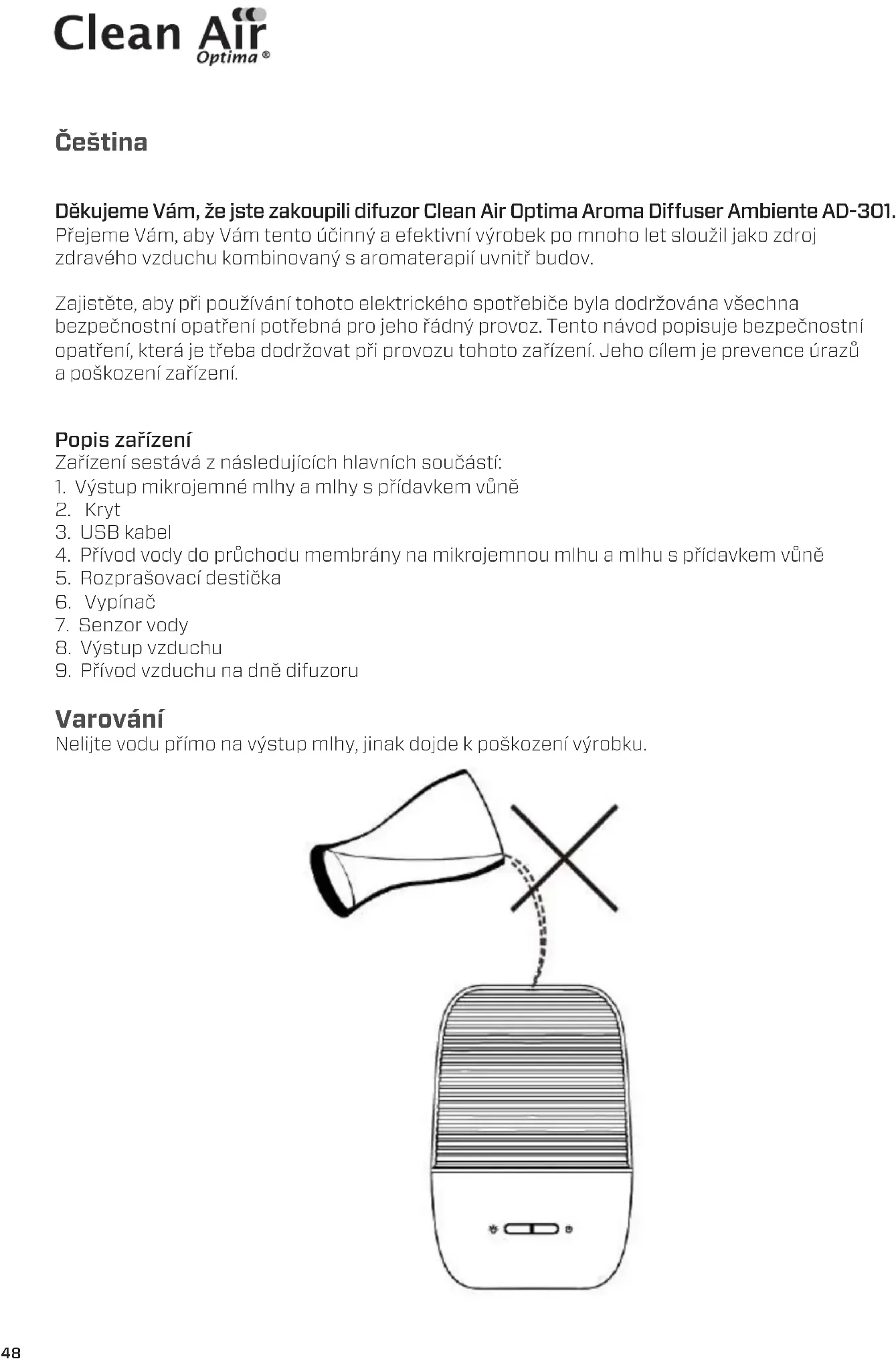 AD301 - Aromadifuzér Clean Air Optima - Bezplatný návod k obsluze