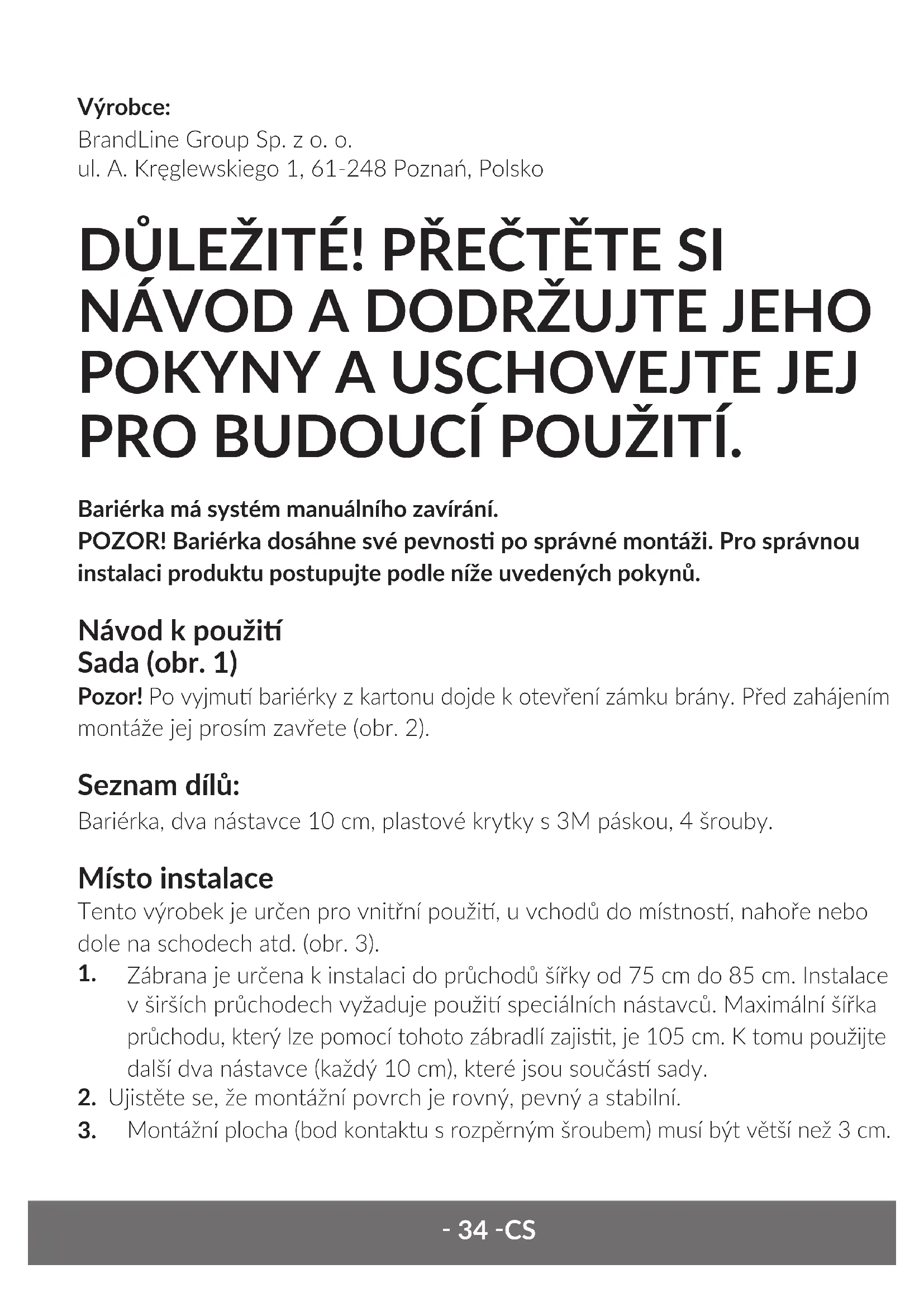 Abyste předešli nebezpečné situaci, před instalací zábrany si pozorně přečtěte tento návod.