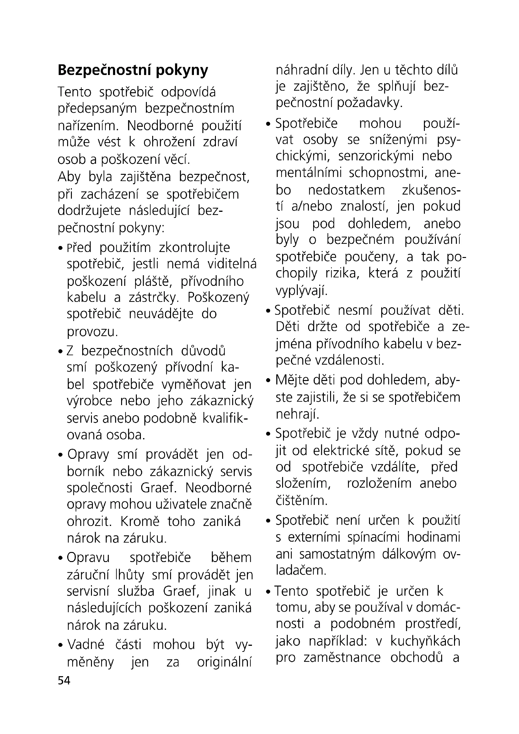 - Opravu spotřebiče během záruční lhůty smí provádět jen servisní služba Graef, jinak u následujících poškození zaniká nárok na záruku.