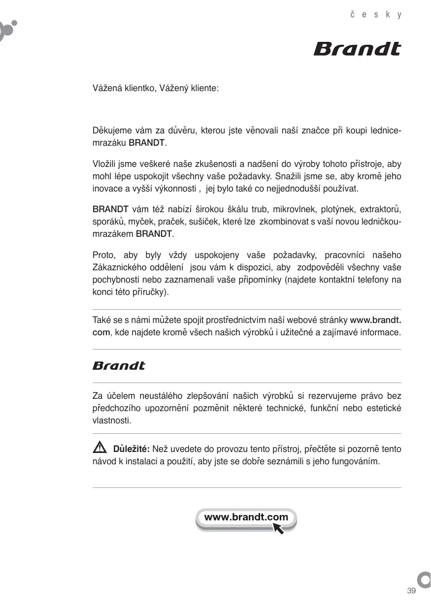 CEN28701X - Lednice BRANDT - Bezplatný návod k obsluze