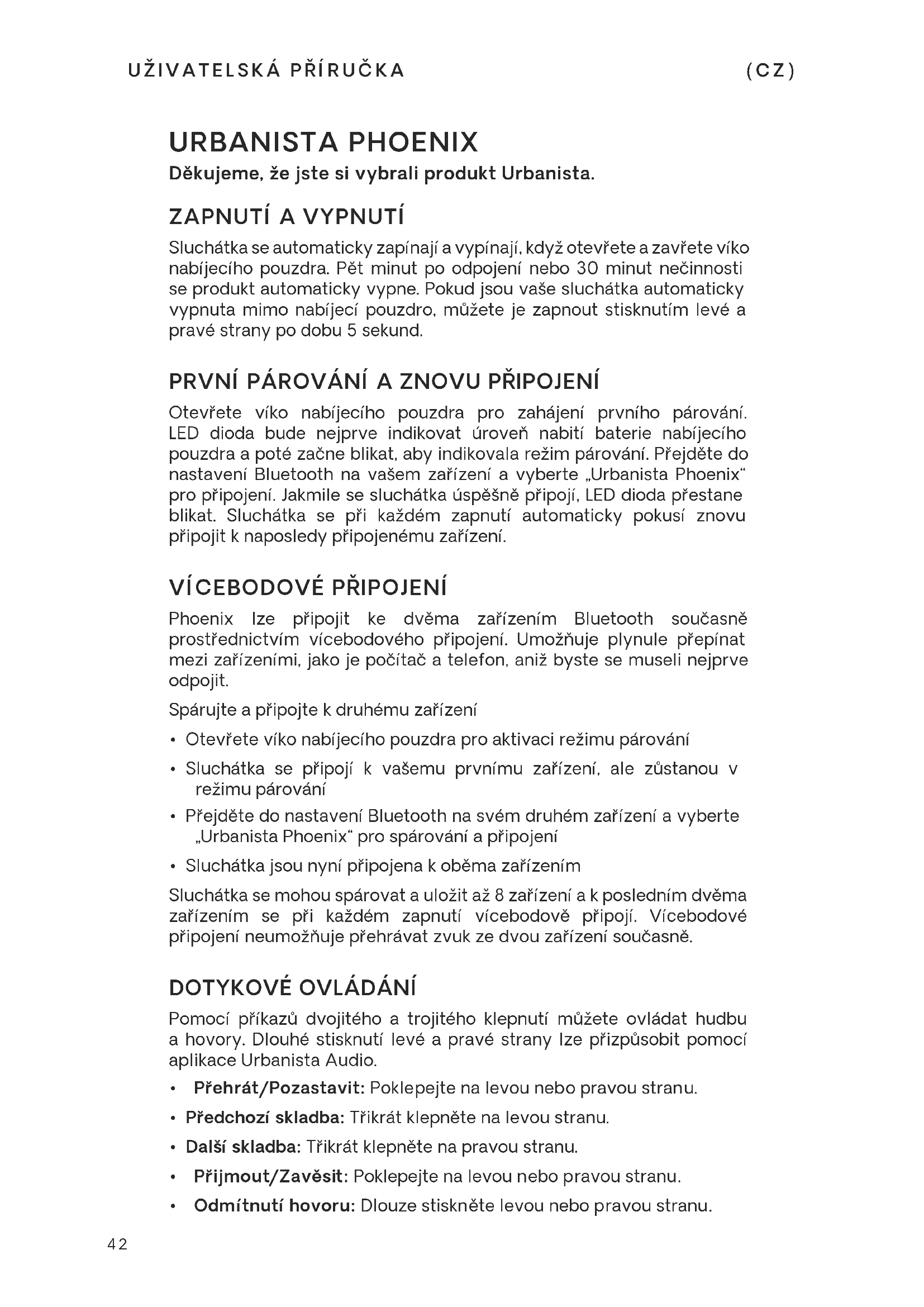 NÁVOD K OBSLUZE Phoenix Urbanista