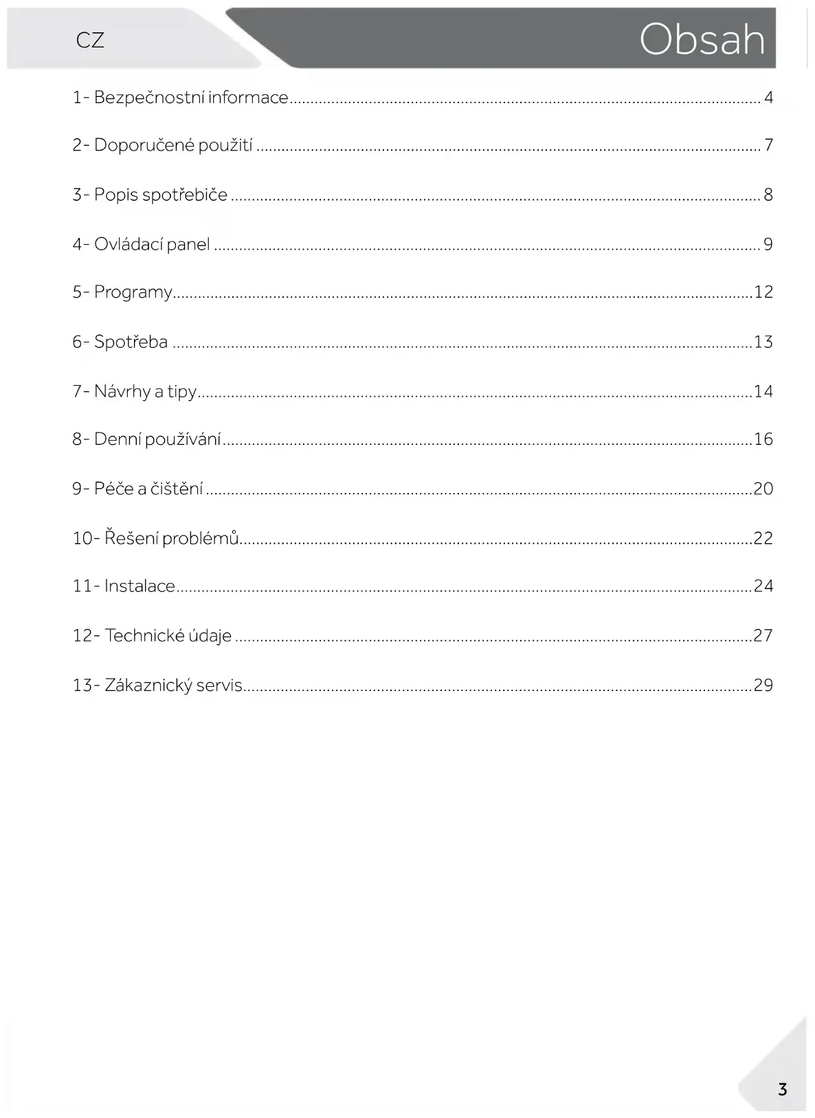 Dry Le vel Delay Wrink le Fr ee Te mp. Ba bycare Quick Dry Mix Cotto n Duvet Synt hetics To wel War m Up Shir t Wool Tim er Bulk y Delic ate Spo rts Childl ock i-Re fr esh 8-8 8-9 8-10 8-11 8-12 8-13 8-14CZ 8-Každodenní používání Tabulka péče Praní Možné prát až do 95 °C běžný proces Možné prát až do 60°C běžný proces Možné prát až do 60°C šetrný proces Možné prát až do 40°C běžný proces Možné prát až do 40°C šetrný proces Možné prát až do 40°C velmi šetrný proces Možné prát až do 30°C běžný proces Možné prát až do 30°C šetrný proces Možné prát až do 30°C velmi šetrný proces Ruční praní max. 40 °C Neprat Bělení Je povoleno jakékoliv bělení Jen kyslík/ bez chlóru Nebělit Sušení Sušení v bubnové sušičce je možné při normální teplotě Sušení v bubnové sušičce je možné při nižší teplotě Nesušte v bubnové sušičce Sušení na šňůře Sušení na plocho Žehlení Žehlit při maximální teplotě do 200 °C Žehlit při střední teplotě do 150°C Žehlit při nízké tep- lotě až do 110 °C; bez páry (žehlení párou může způsobit ne- vratné poškození) Nežehlit 19CZ
