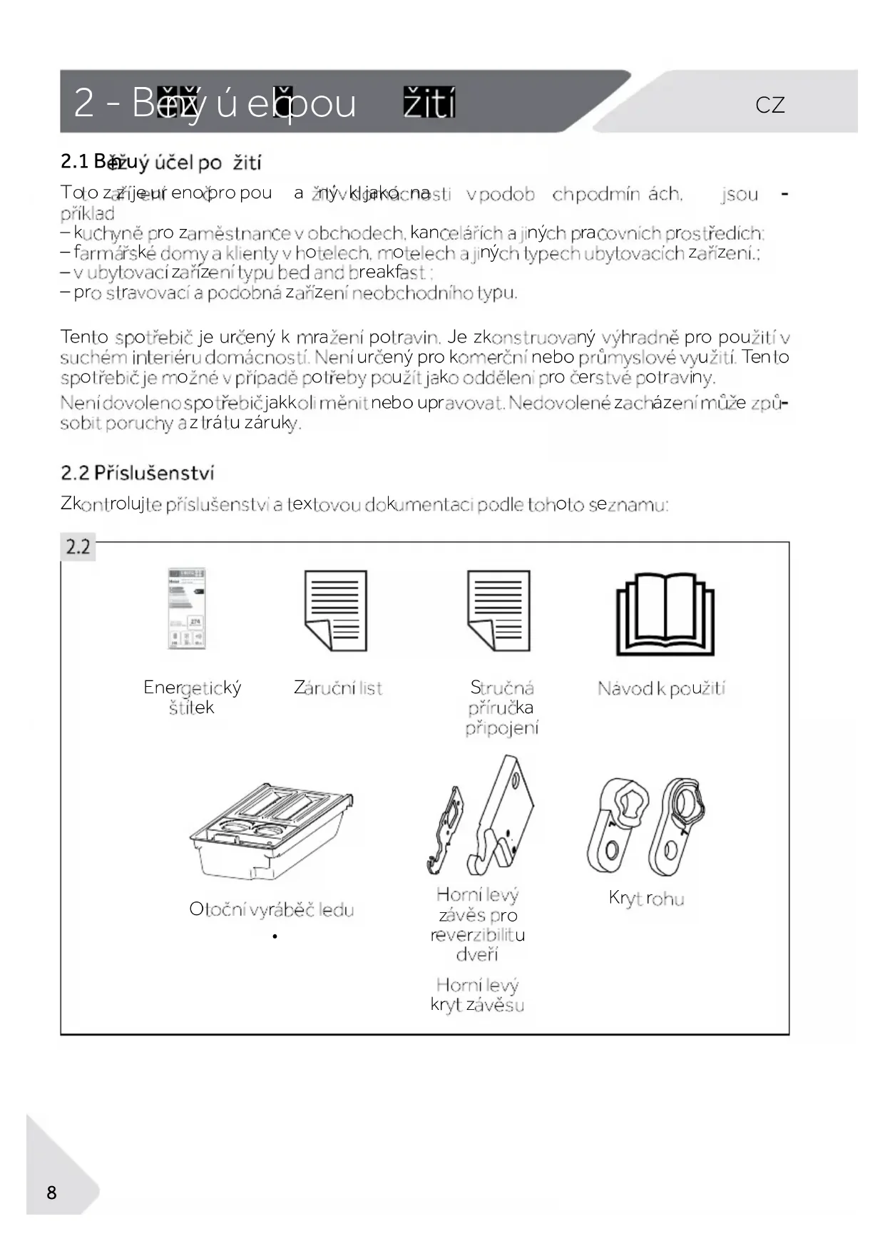 Tipy na ušet ení energie Zkontrolujte, zda spot r rá (viz INSTALACE). Neinstalujte spot na nebo do blízkosti tepelných zdr rák, radiátory). Nenastavujte na spot zbyt nízk teploty. ni ší teplota je na spot yšší je spot eba energie. T otraviny nechce p ed ulo ot ebi e ochladit. Dve e spot ebi e otvírejte c co nejkratší dobu. Ujist te se, e jsou dve e v dy spr zav a nejsou ezeny polohou potravin. Udr te t t ra otraviny ro razujte v ledni ce. Pr t te z ot ebi e. Prach zvyšuje spot ebu energie.