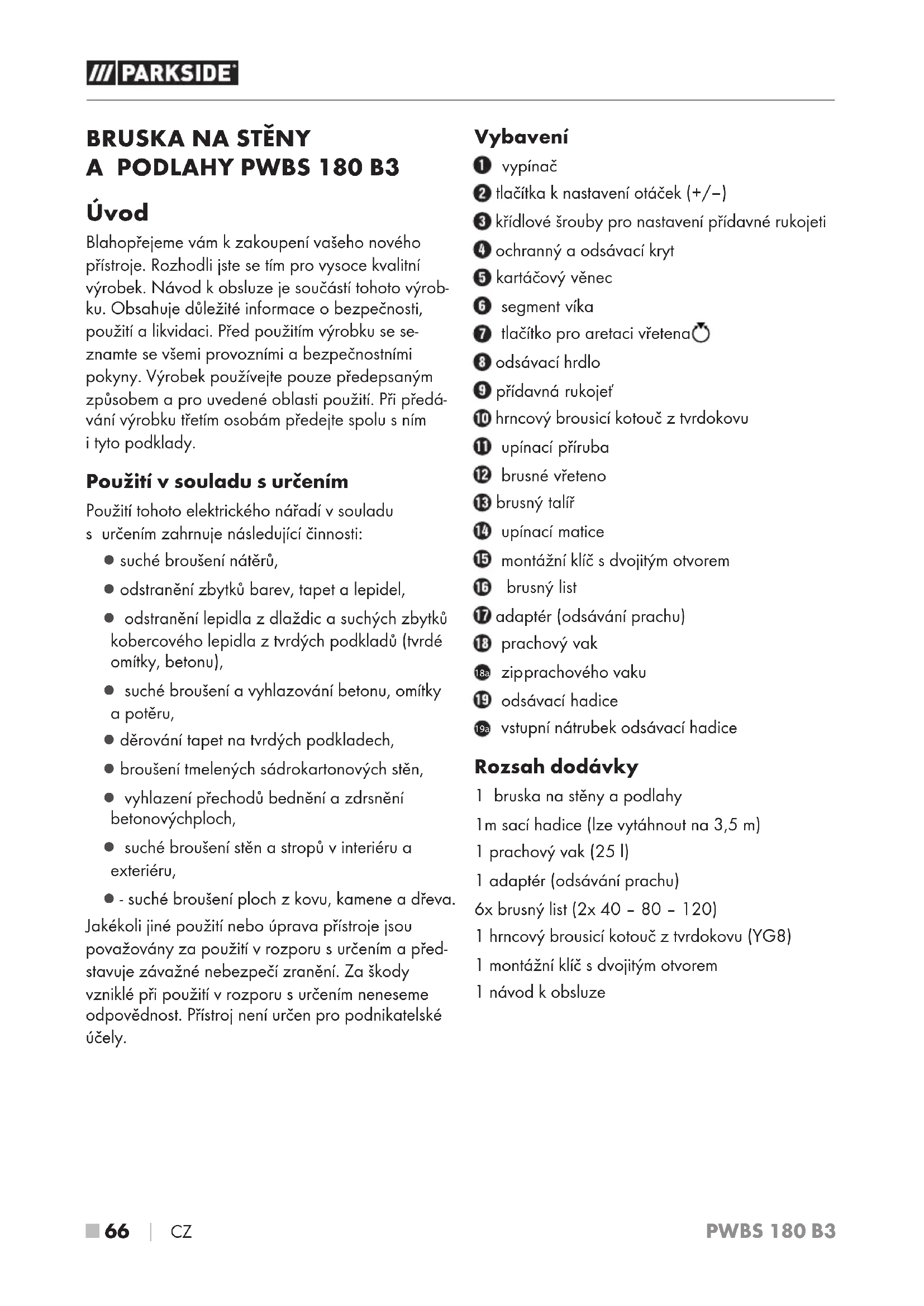 NÁVOD K OBSLUZE PWBS 180 B3 PARKSIDE