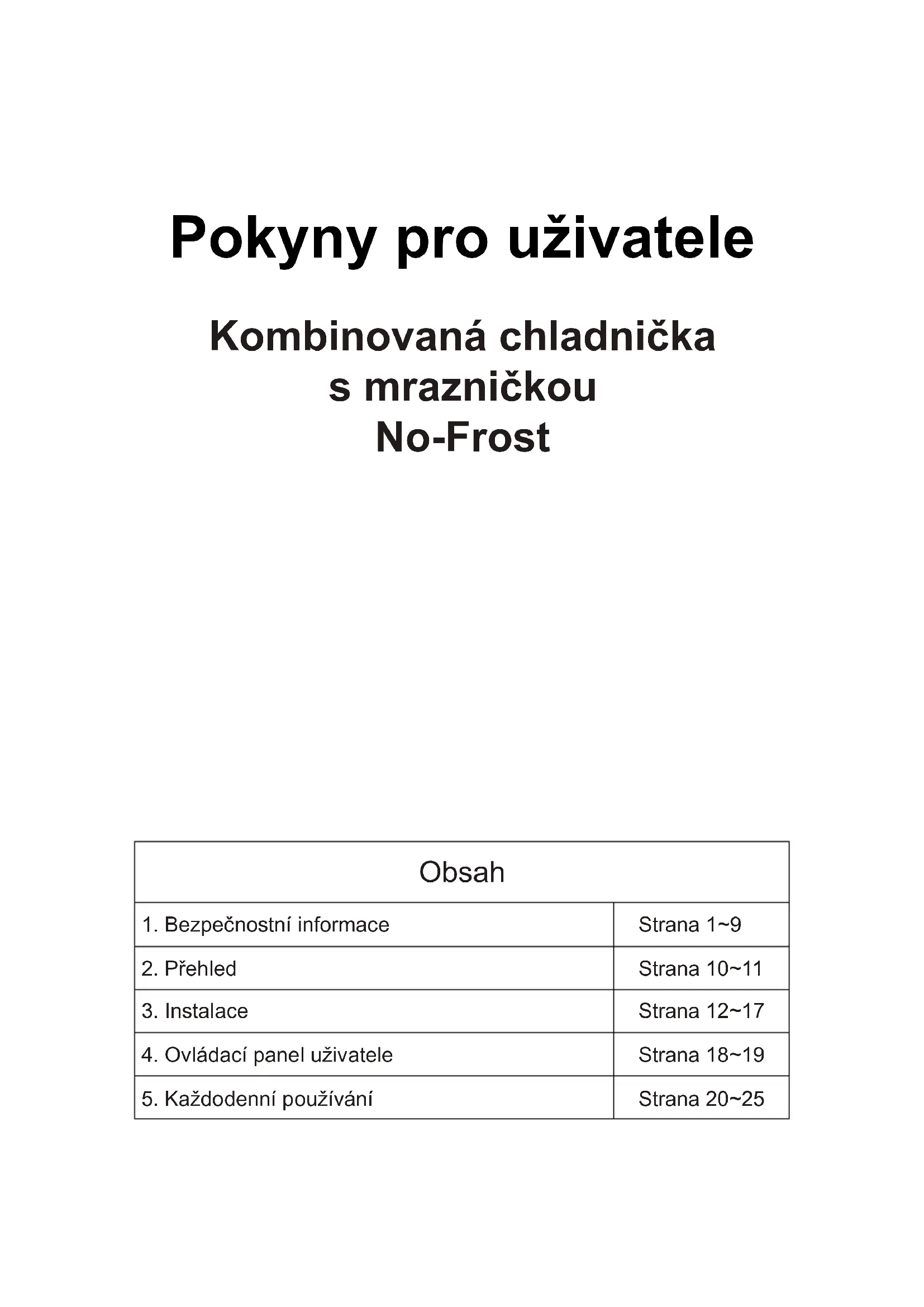 V zájmu vaší bezpečnosti a pro zajištění správné funkce si před instalací a prvním použitím pečlivě přečtěte tento návod k použití spolu s tipy a varováními. Abyste předešli zbytečným chybám a nehodám, je důležité zajistit, aby se všechny osoby, které budou spotřebič používat, důkladně seznámily s jeho provozem a bez- pečnostními prvky. Tyto pokyny si uschovejte a v případě přemístění nebo prodeje spotřebiče zajistěte, aby zůstaly spolu se spotřebičem, aby každý, kdo spotřebič používá, měl po celou dobu jeho životnosti k dispozici informace o používání a bezpečnosti spotřebiče. V zájmu ochrany života a majetku dodržujte bezpeč- nostní pokyny uvedené v návodu k použití, protože výrobce neodpovídá za škody způsobené opomenutím. Bezpečnost dětí a zranitelných osob Tento spotřebič mohou používat děti od 8 let a osoby se sníženými fyzickými, smyslovými nebo duševními schopnostmi nebo s nedostatečnými zkušenostmi a znalostmi za předpokladu, že mají zajištěný dohled, nebo byly poučeny o bezpečném používání spotřebiče a chápou související rizika. Děti ve věku od tří do osmi let mohou do spotřebiče vkládat potraviny a vyjímat je z něj. Zajistěte dohled dětí, aby si se spotřebičem nemohly hrát. Čištění a údržbu nesmí provádět děti, pokud nejsou starší 8 let a nejsou pod dohledem. Všechny obaly uchovávejte mimo dosah dětí. Hrozí nebezpečí udušení.Bezpečnostní informace