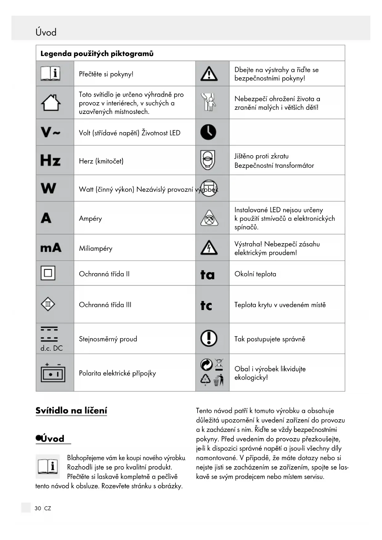 Obal i výrobek likvidujte ekologicky! Svítidlo na líčení Úvod