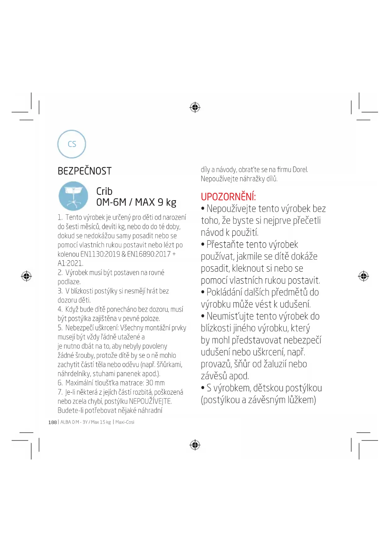 - Používejte pouze matraci prodávanou s touto dětskou postýlkou, nepokládejte na ni další matraci; hrozí nebezpečí udušení. NNaše výrobky byly pečlivě vyvinuty a testovány tak, aby zajistily bezpečnost a pohodlí Vašeho dítěte. EN 12790:2009